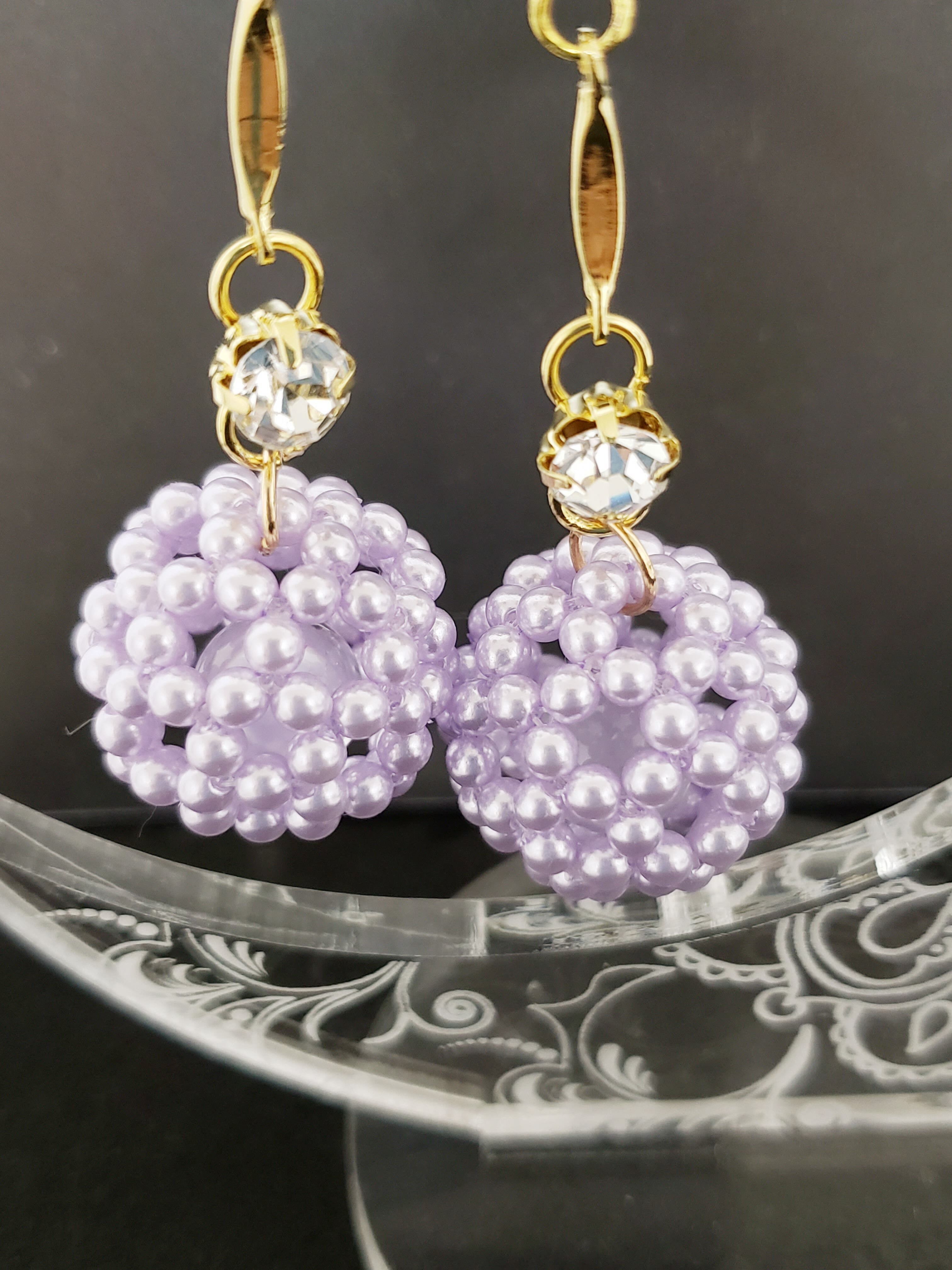 パ-ル調フラーレン/天然石水晶入りピアス ラベンダ-
