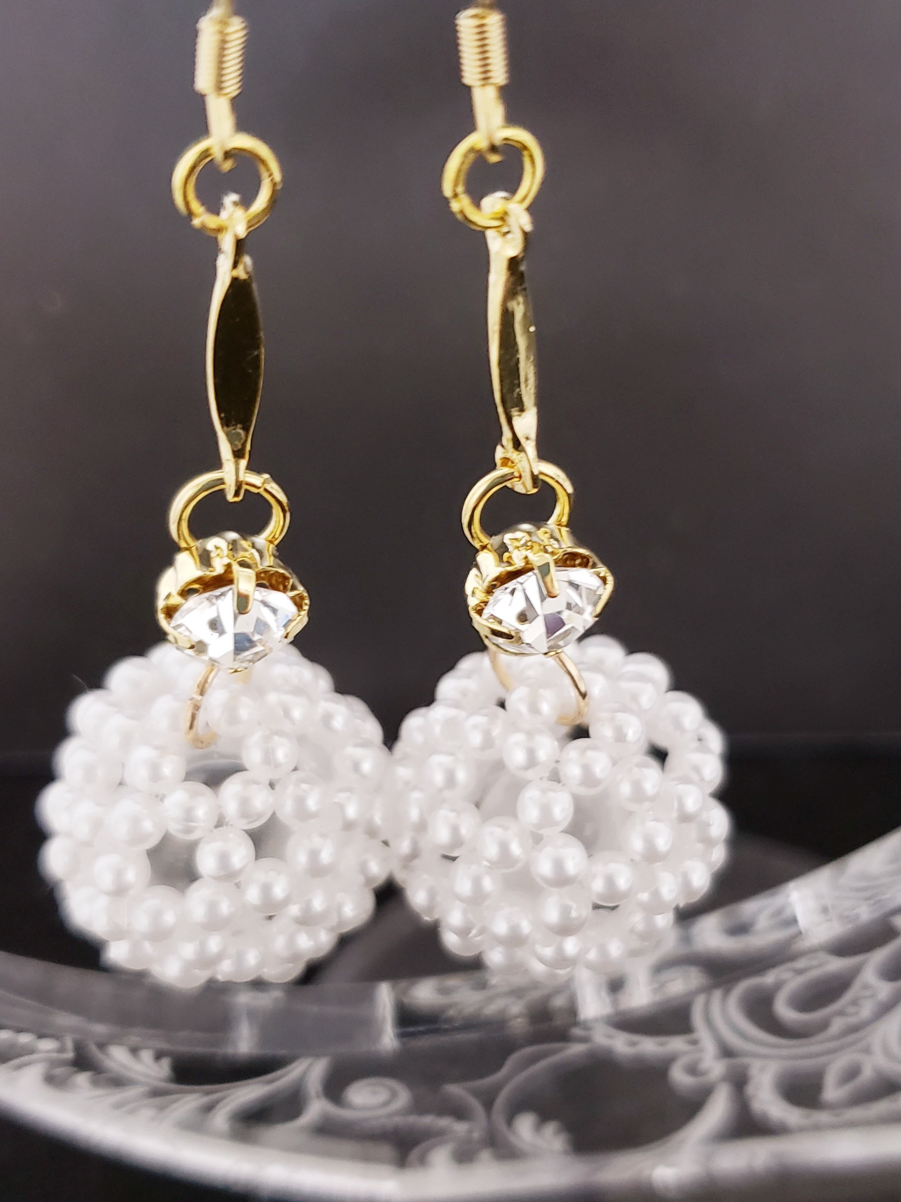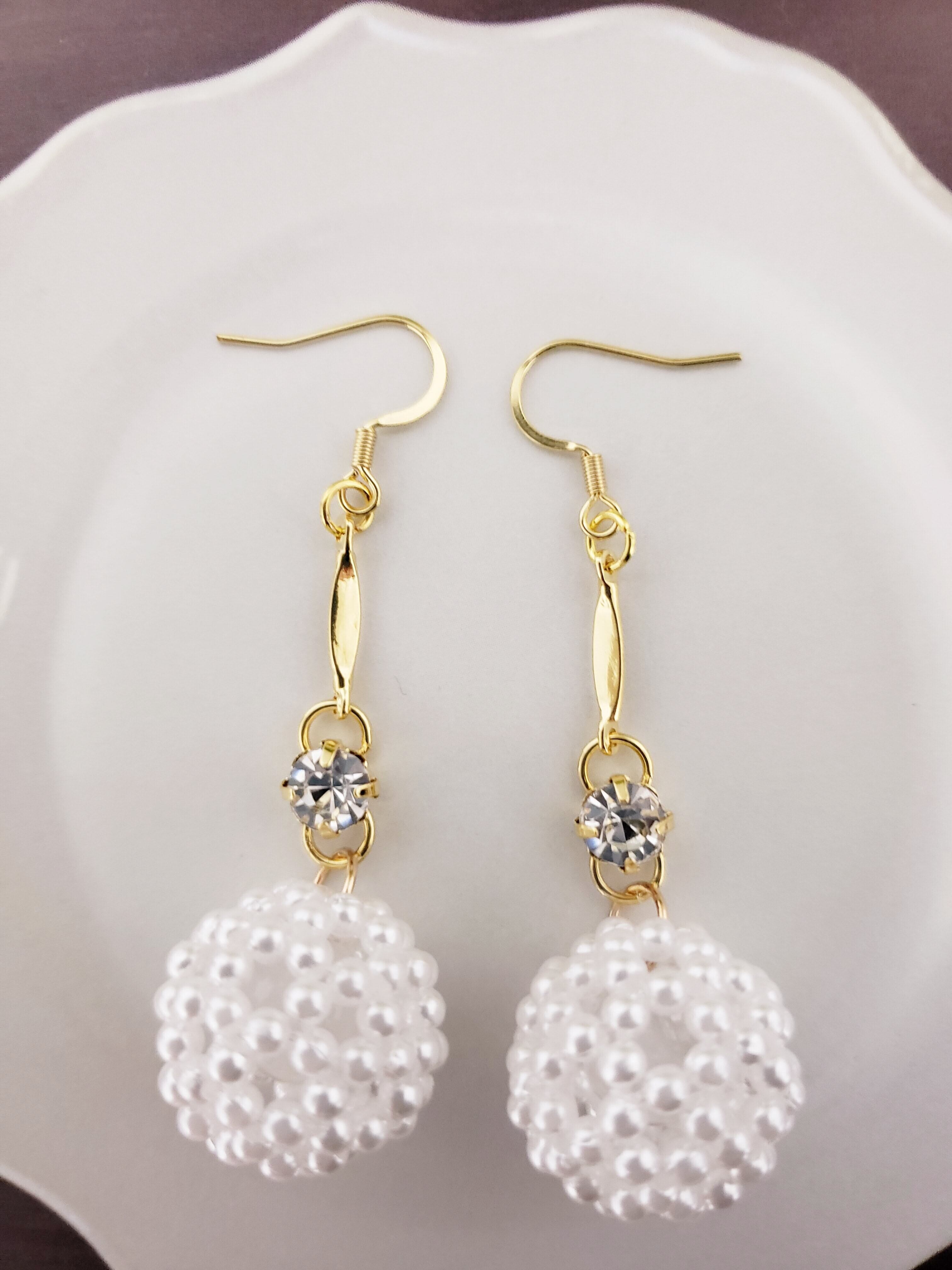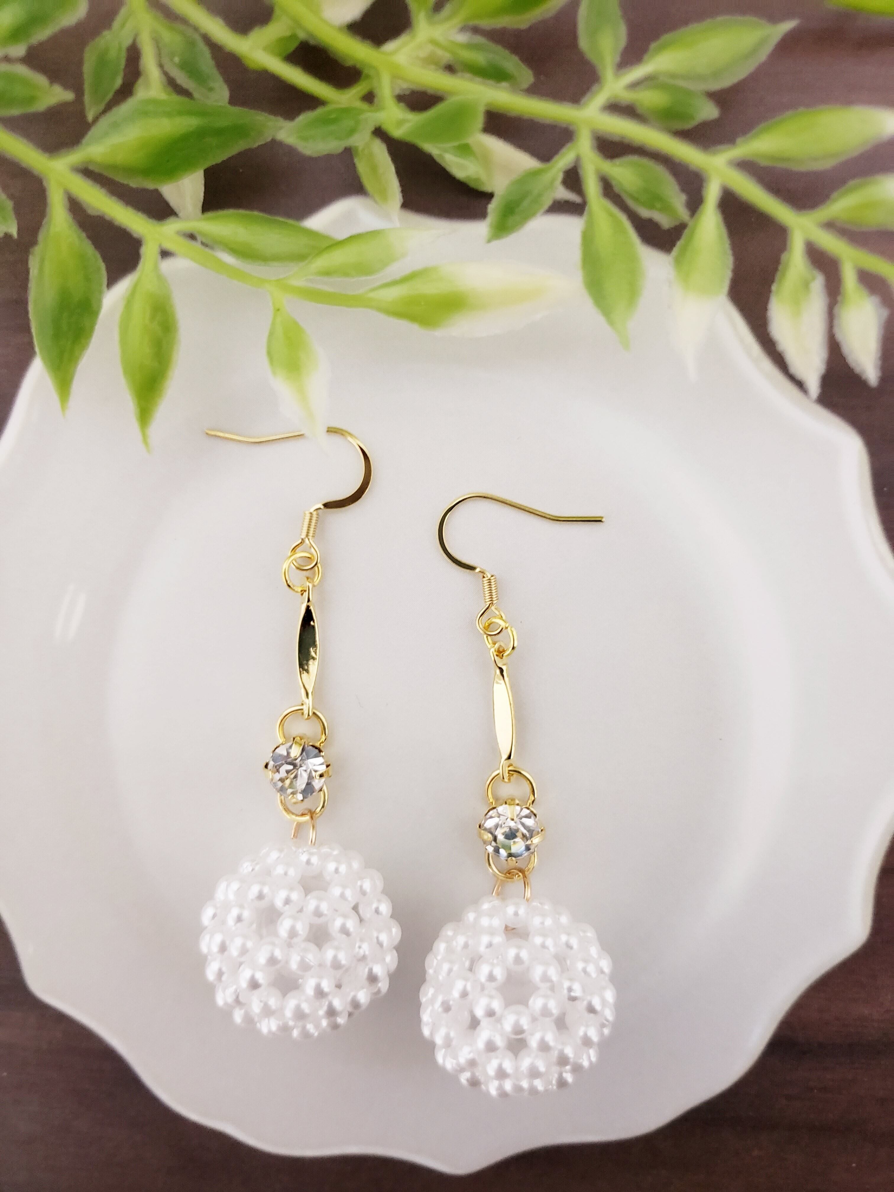 パ-ル調フラーレン/天然石水晶入りピアス ホワイト