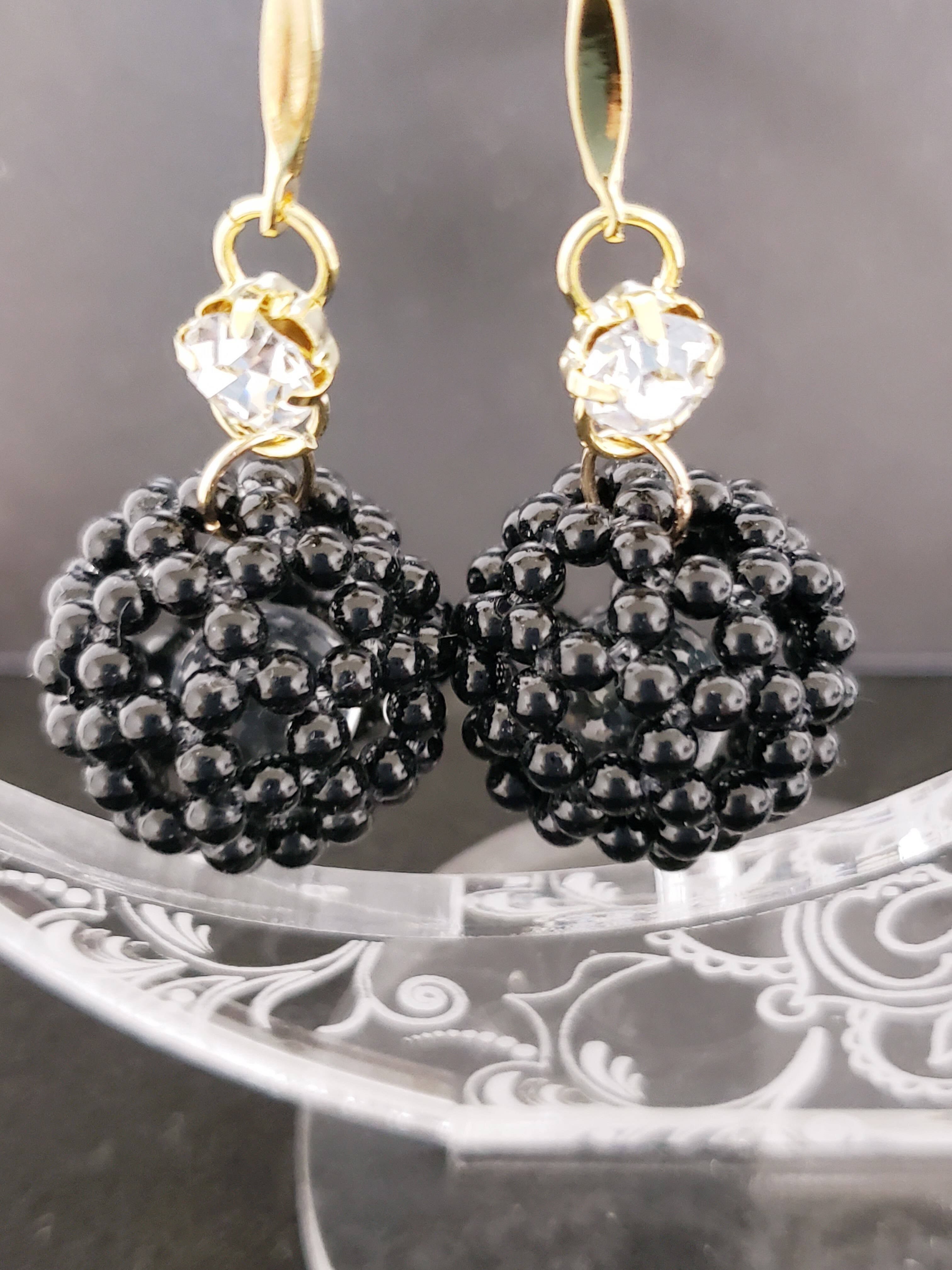 パ-ル調フラーレン/天然石水晶入りピアス ブラック