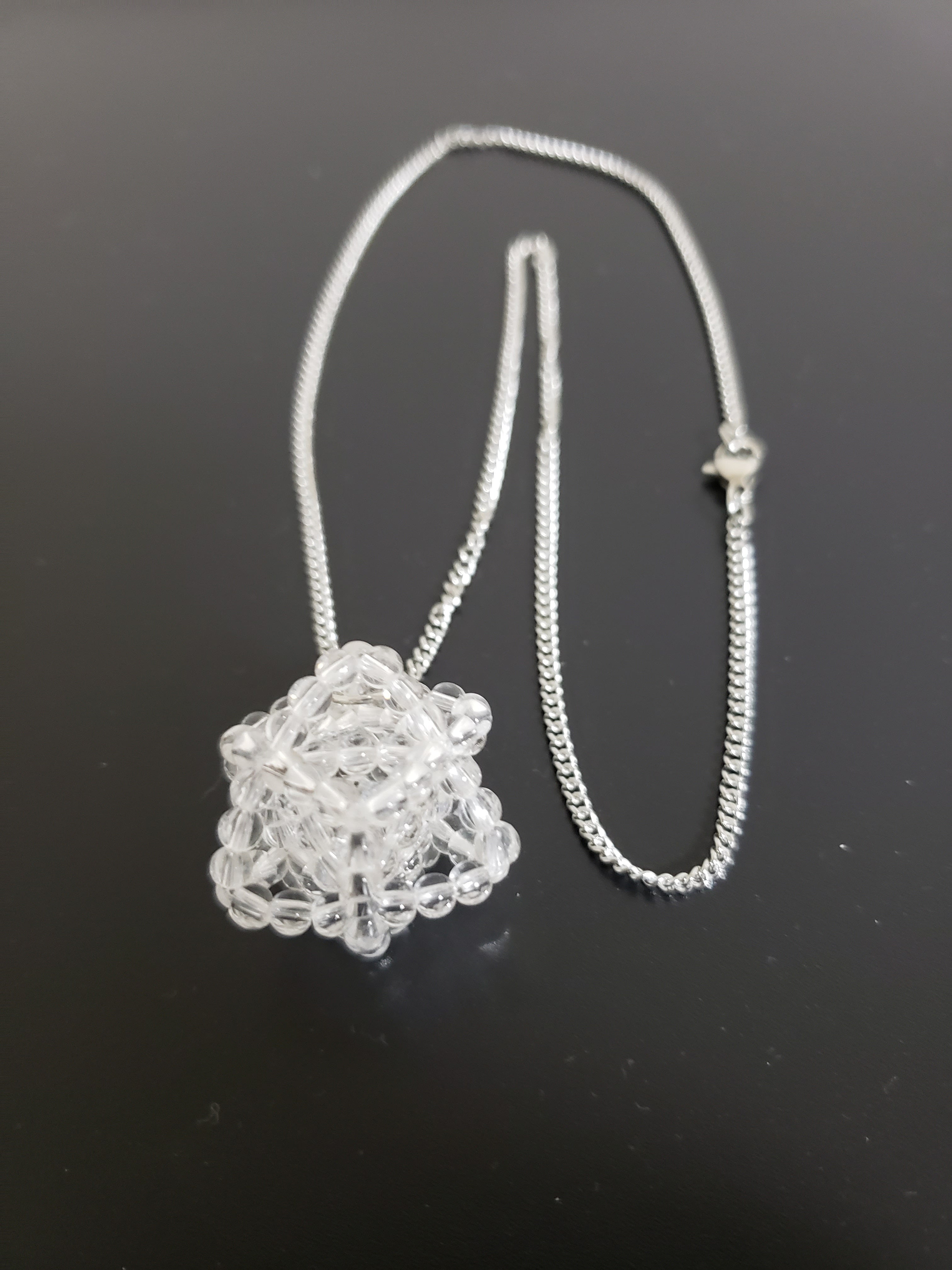 神聖幾何学☆マカバ☆シルバーネックレス AAAブラジル産水晶クリスタル3㎜玉