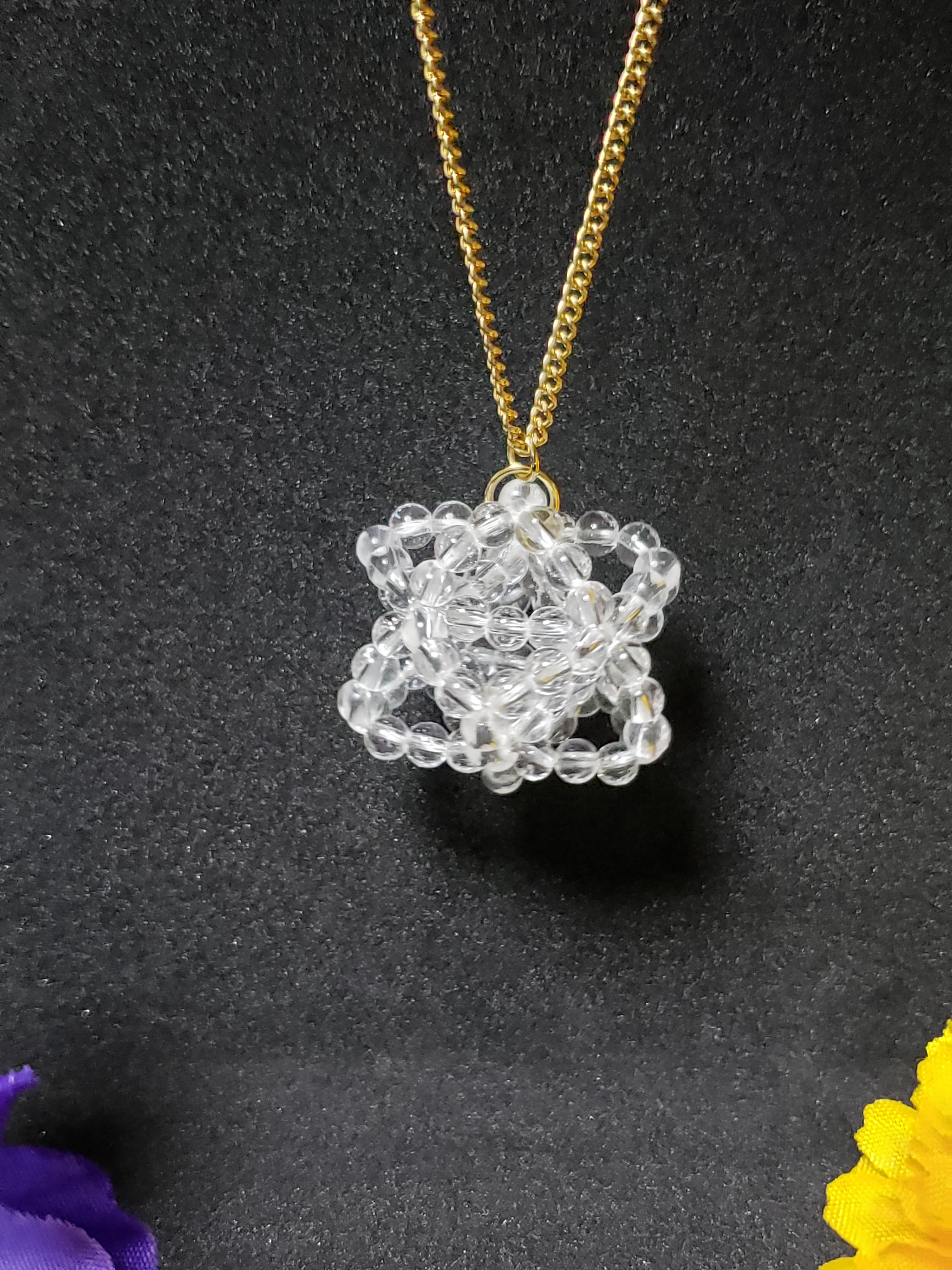 神聖幾何学☆マカバ☆ゴ-ルドネックレス AAAブラジル産水晶クリスタル4㎜玉