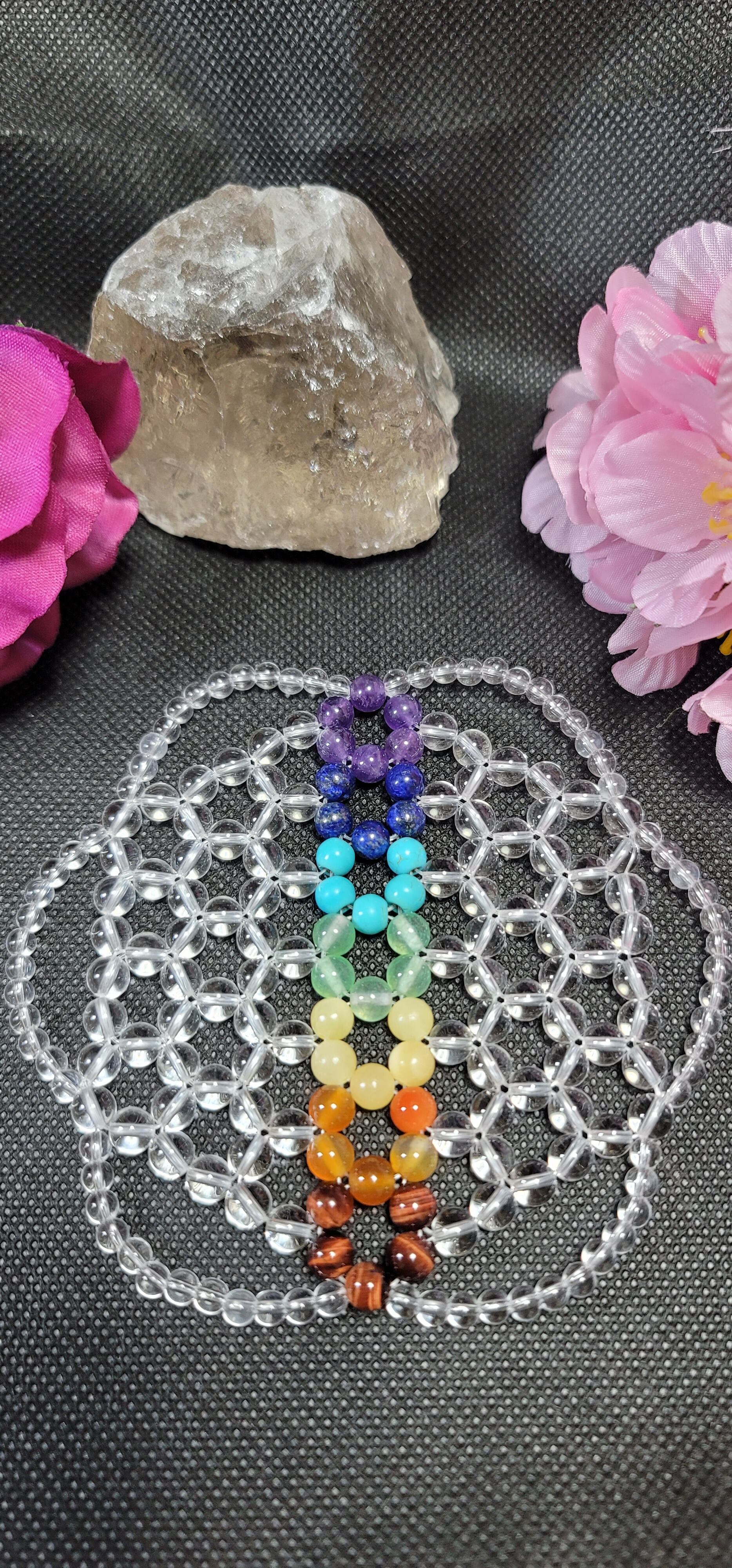 神聖幾何学フラワーオブライフ台座/天然石水晶&天然石チャクラカラー