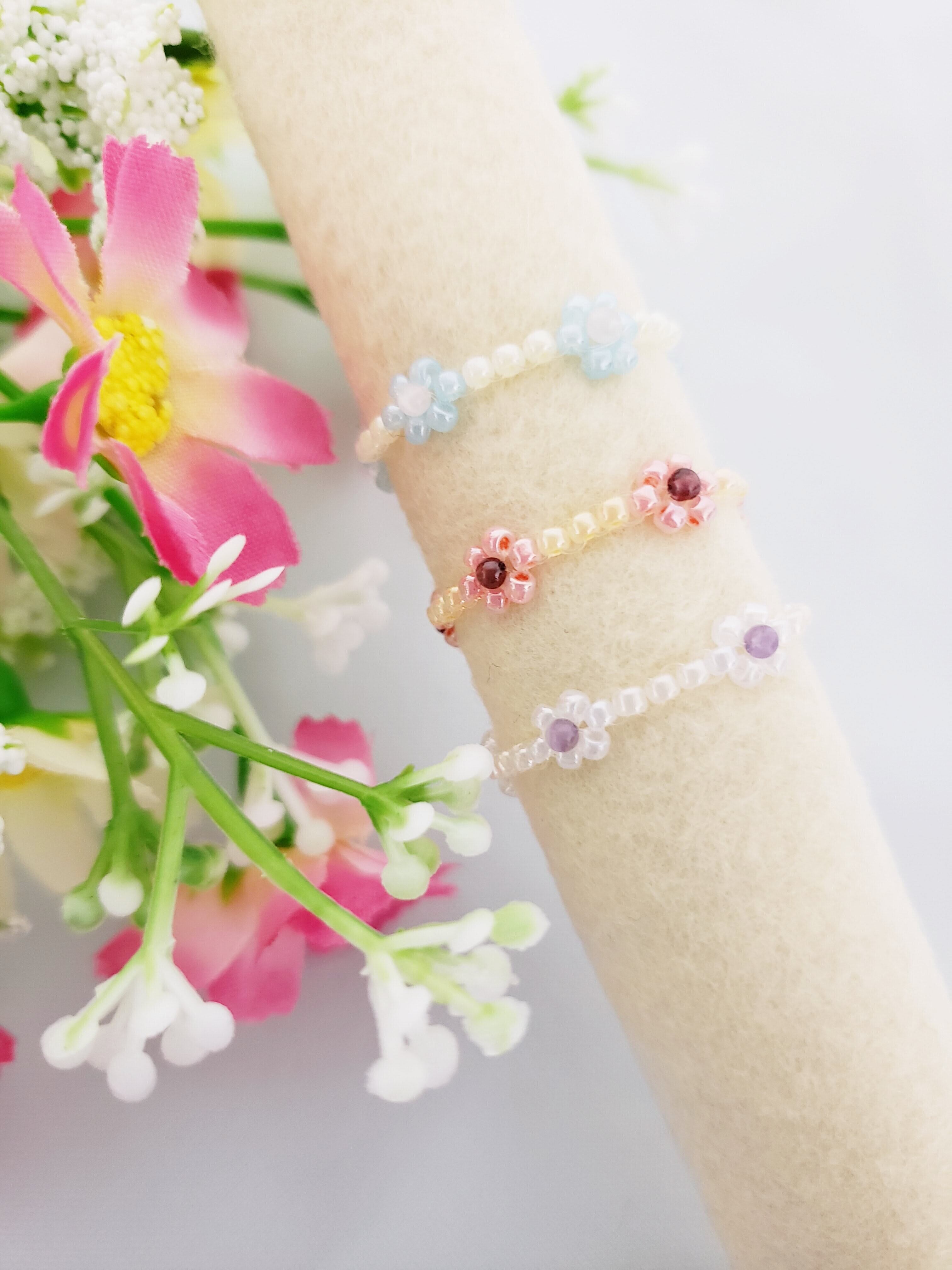 ♡3種set♡ 天然石入りフラワーリング ブルー&ピンク&ホワイト