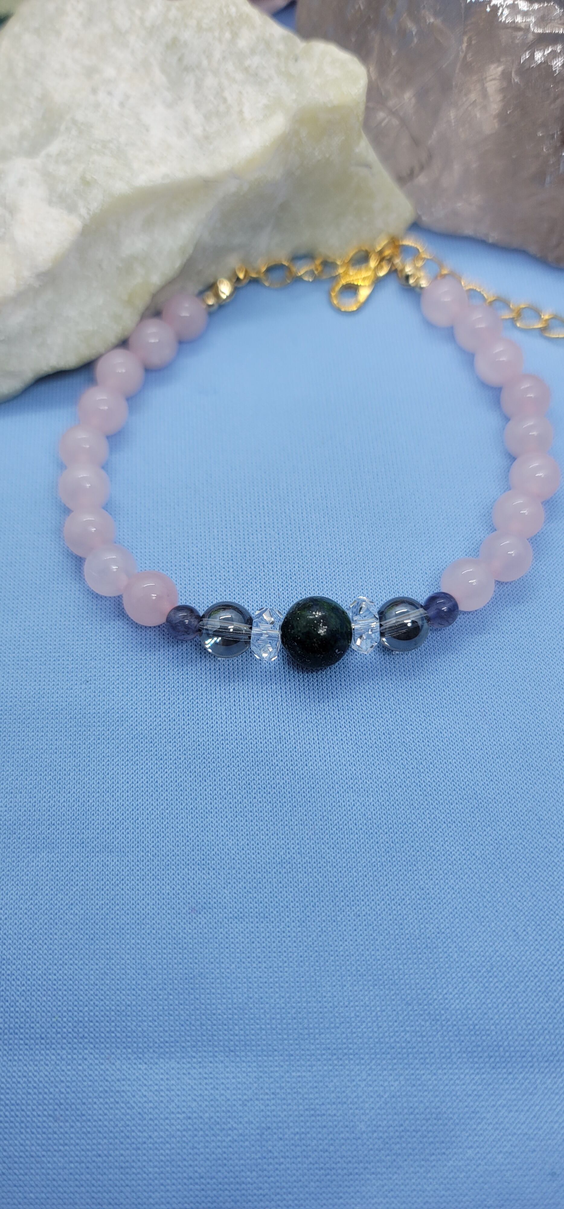 2つの鉱物が美しく混ざり合ったアズロマラカイトは、ネガティブな感情を浄化し、新しいパワーを生み出す効果をもつとされます。幼少期のトラウマが、今の自分の思考や行動をマイナスの方向へ向かわせていると感じたとき身につけてみてください。恐怖心を癒し、高い精神性をもたらしてくれるでしょう。