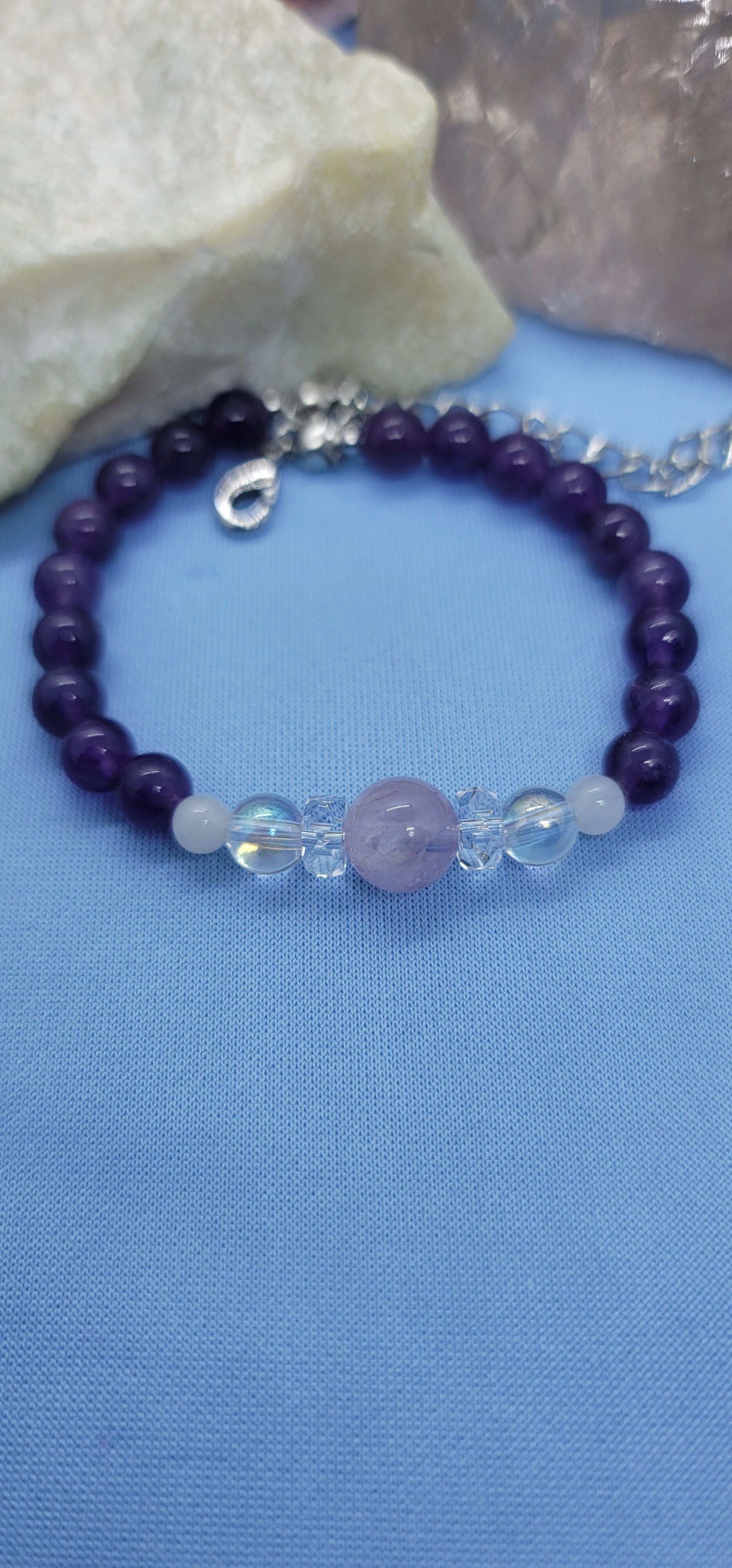 鉱物としてはほぼアメジストとホワイトクリスタルですが、そのアメジストに、アゼツライトと非常に近いエネルギーが確認できるそうです。