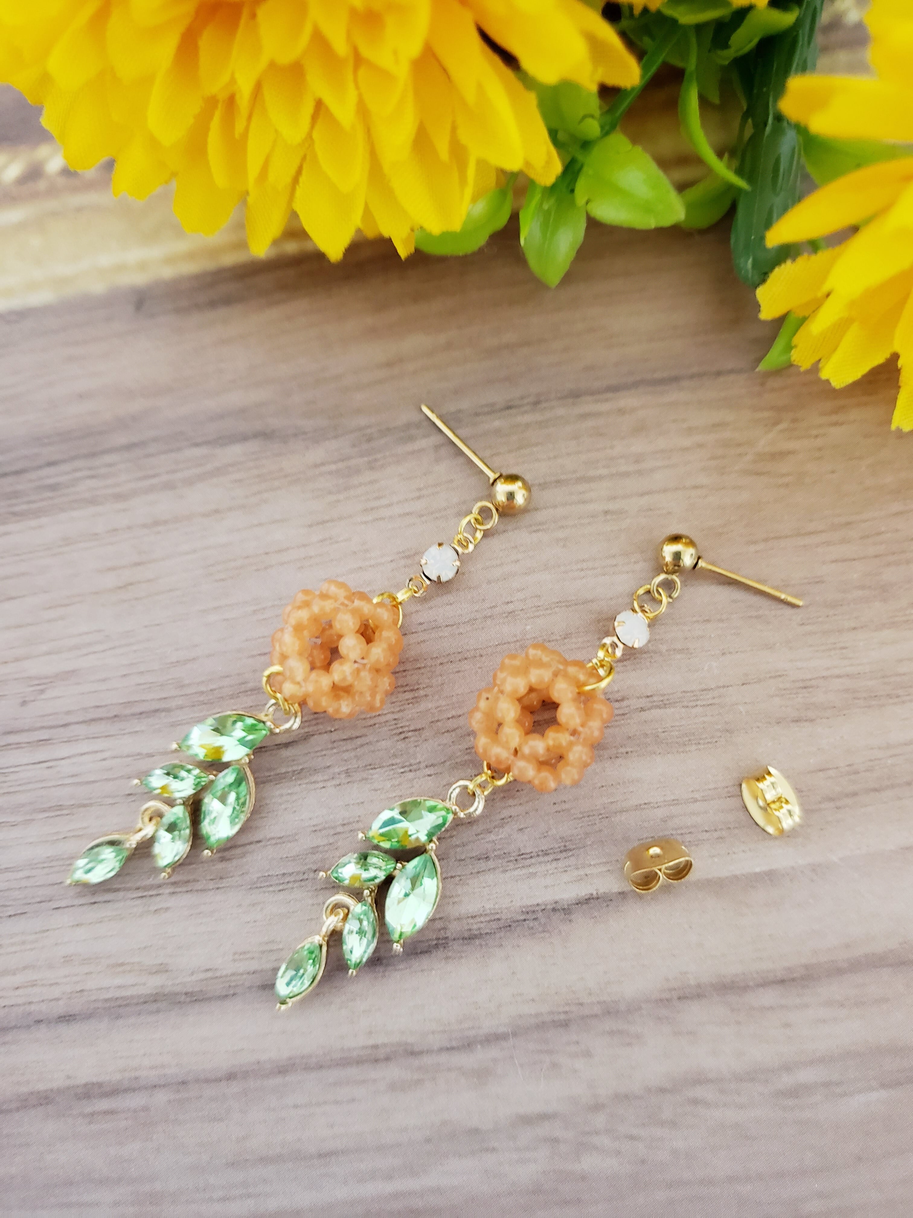神聖幾何学ベクトル平衡体◇オレンジアベンチュリン リ-フピアス