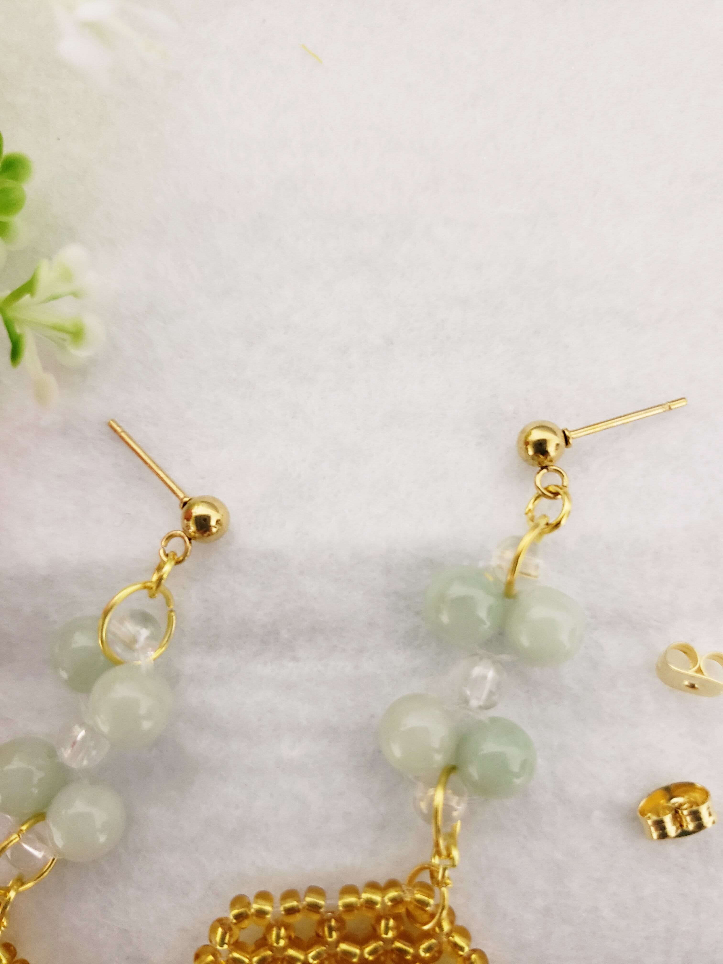 フラワーオブライフ/天然石翡翠&コスモオ-ラ ピアス