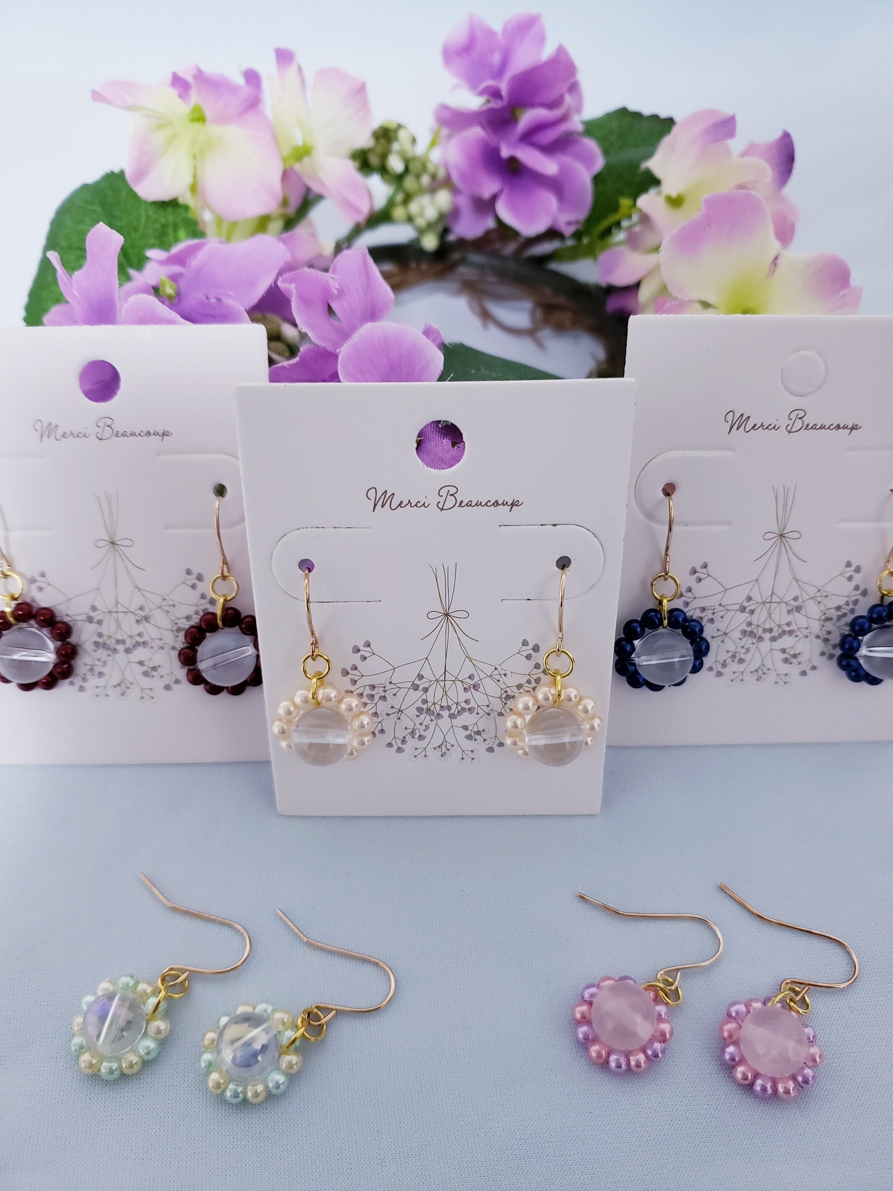 1粒天然石をフラワーピアスとしてアレンジ☆