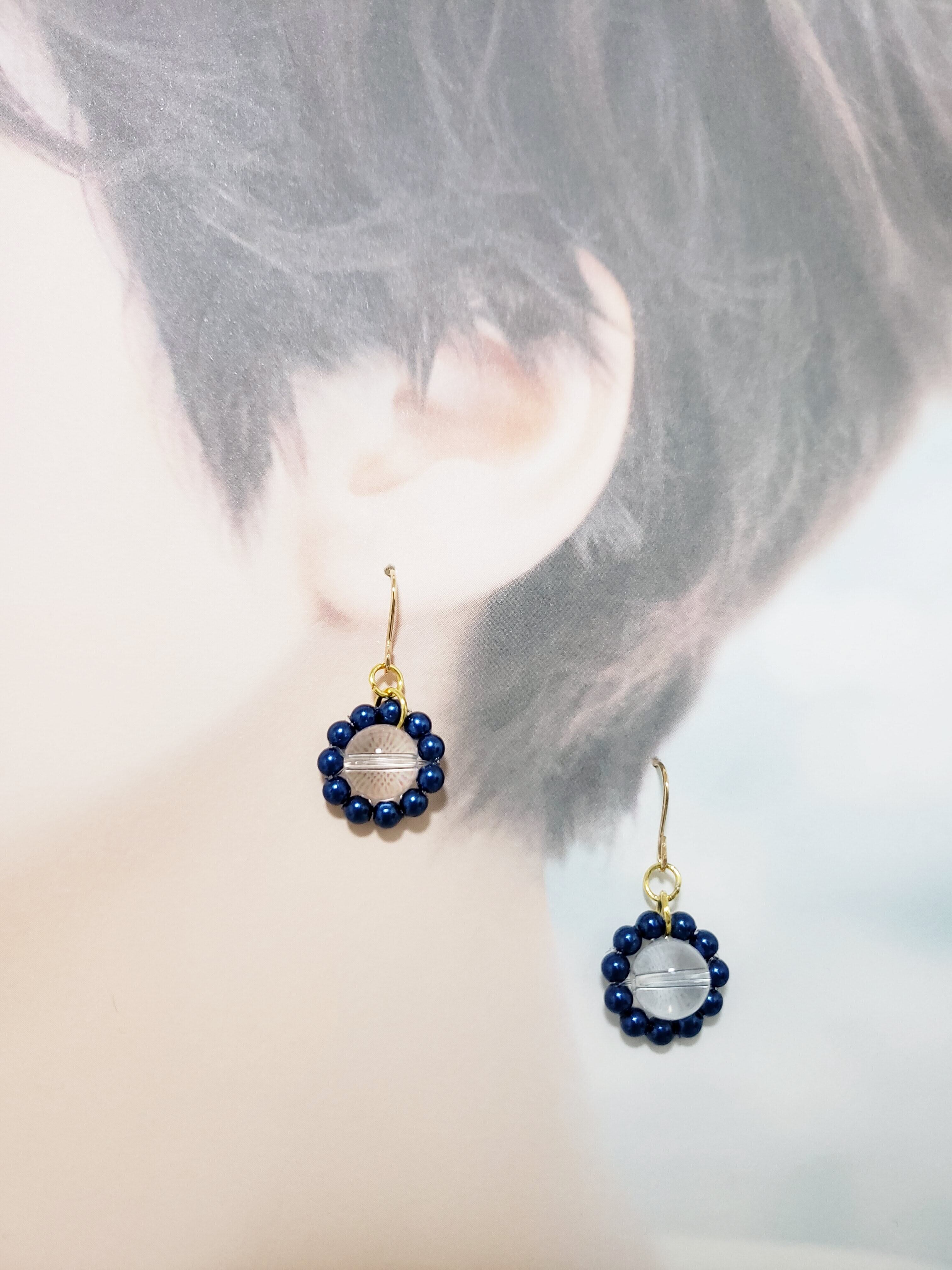 ♡1粒天然石のフラワーピアス♡AAA水晶 ラピスラズリカラー