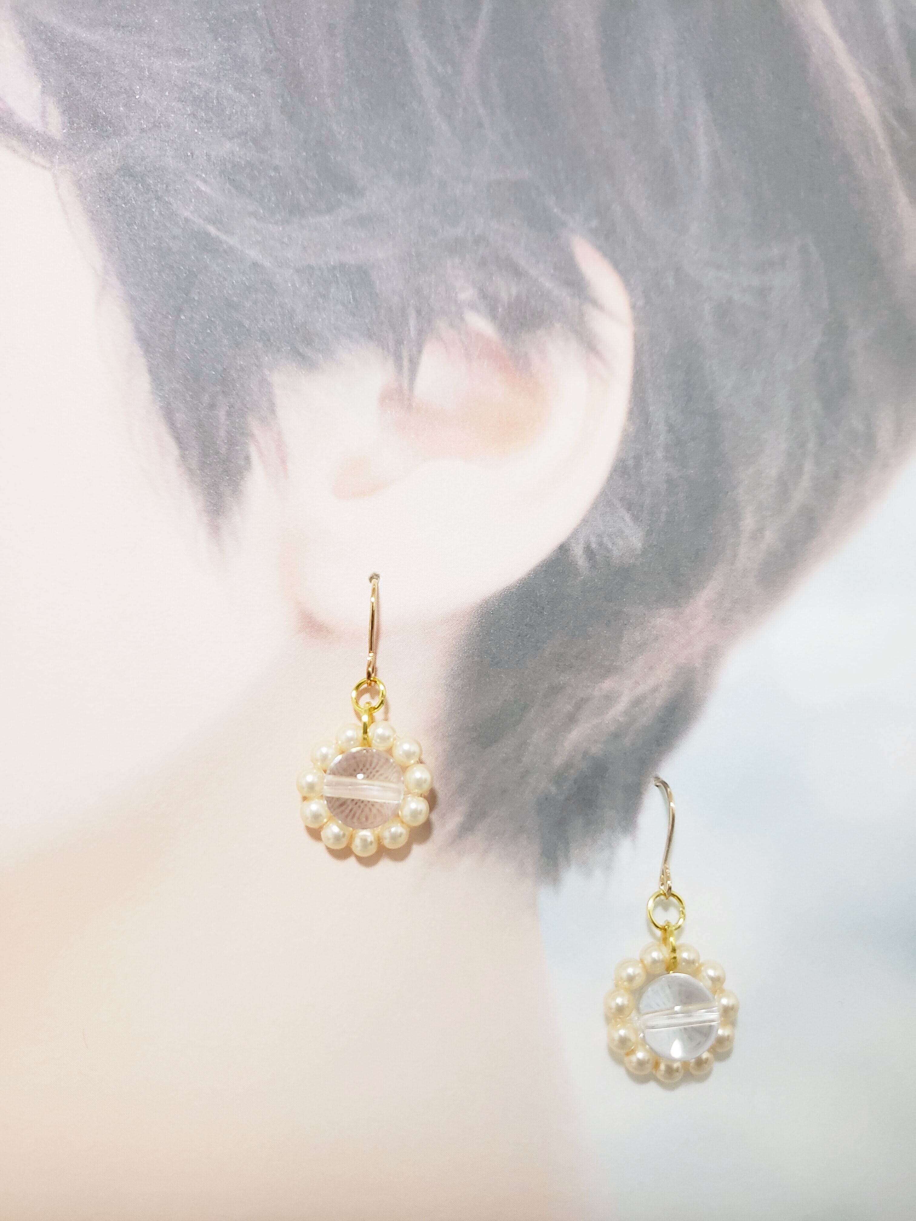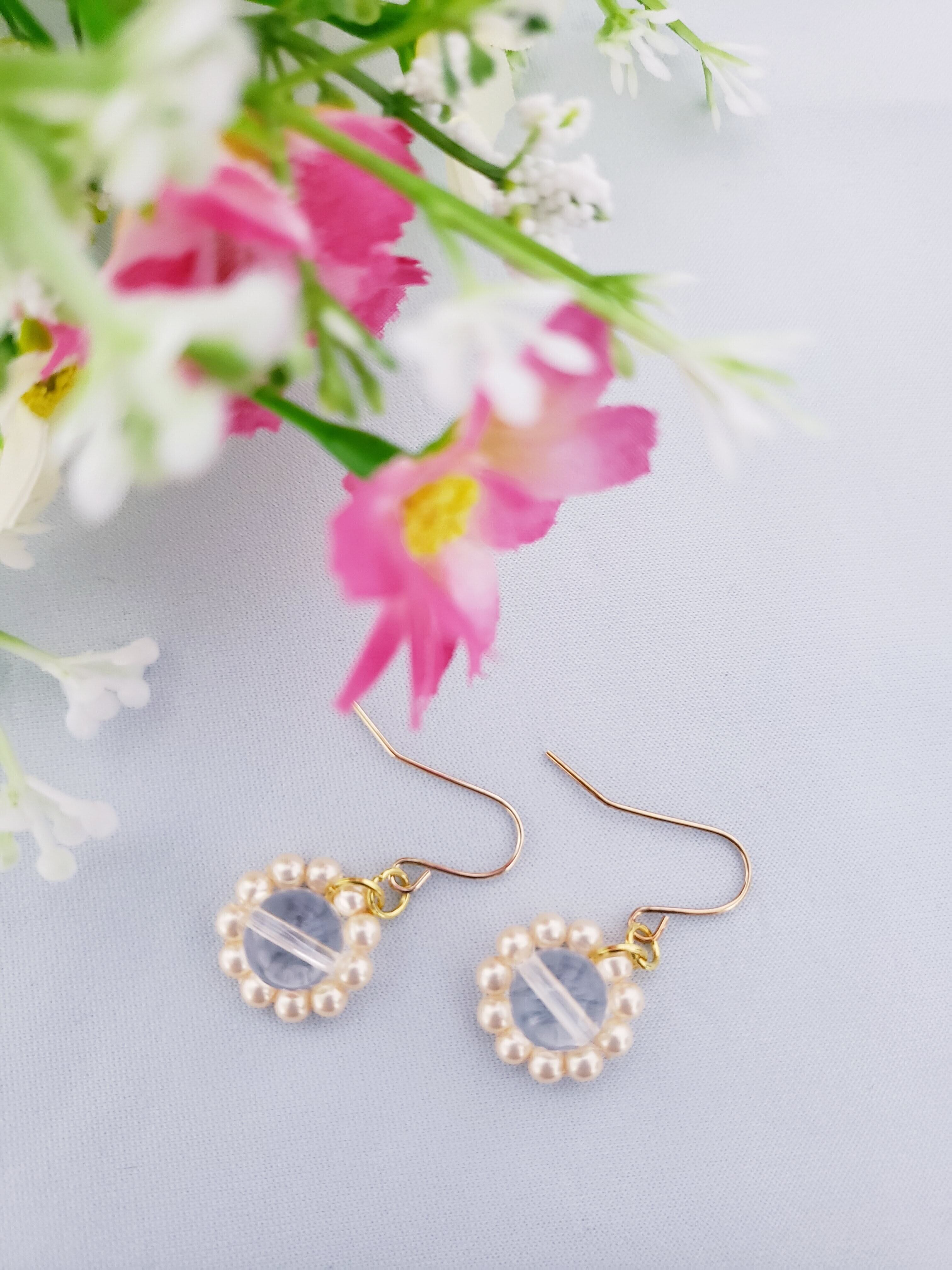♡1粒天然石のフラワーピアス♡AAA水晶 ハニーゴ-ルド