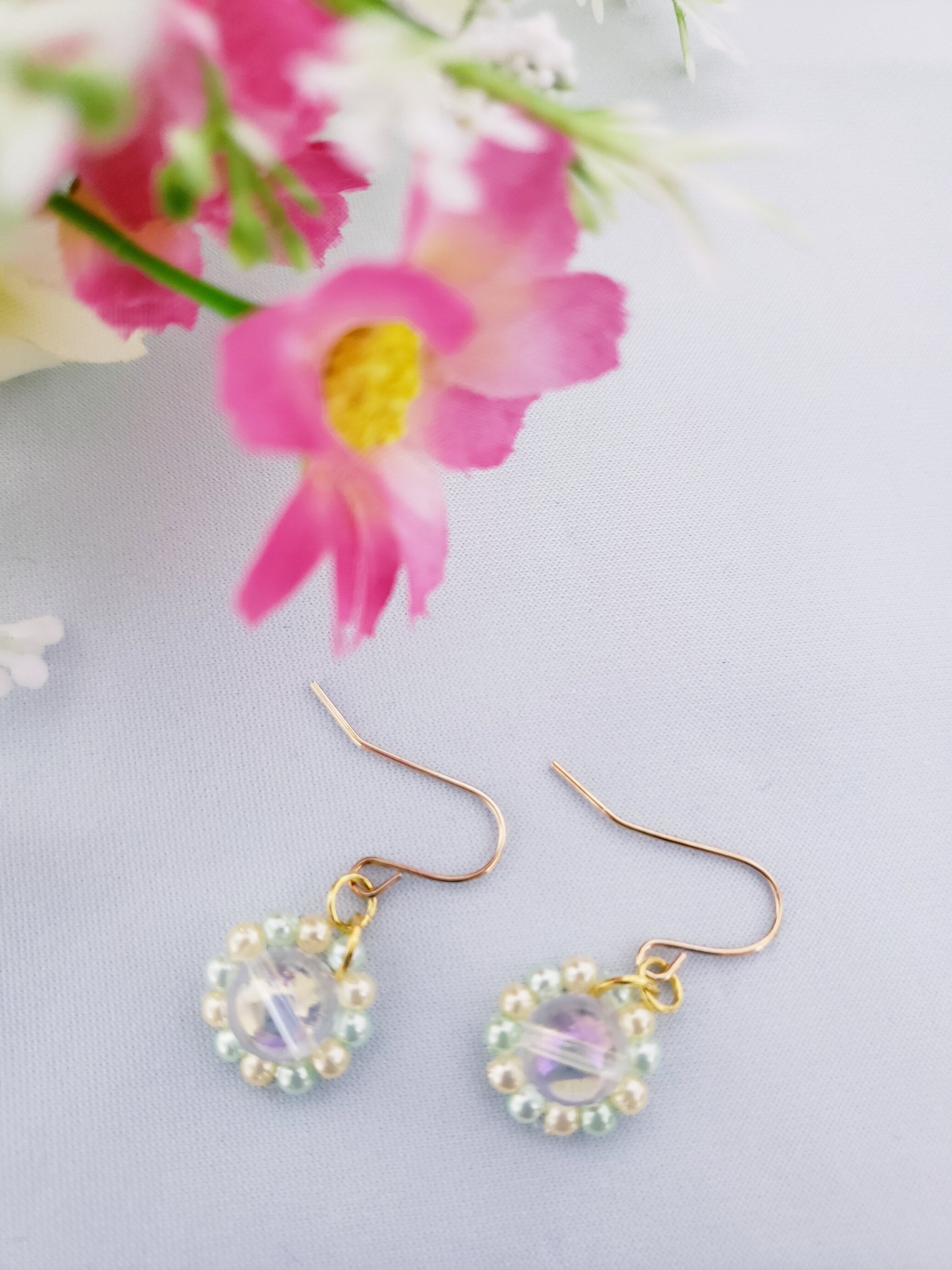 1粒天然石をフラワーピアスとしてアレンジ☆