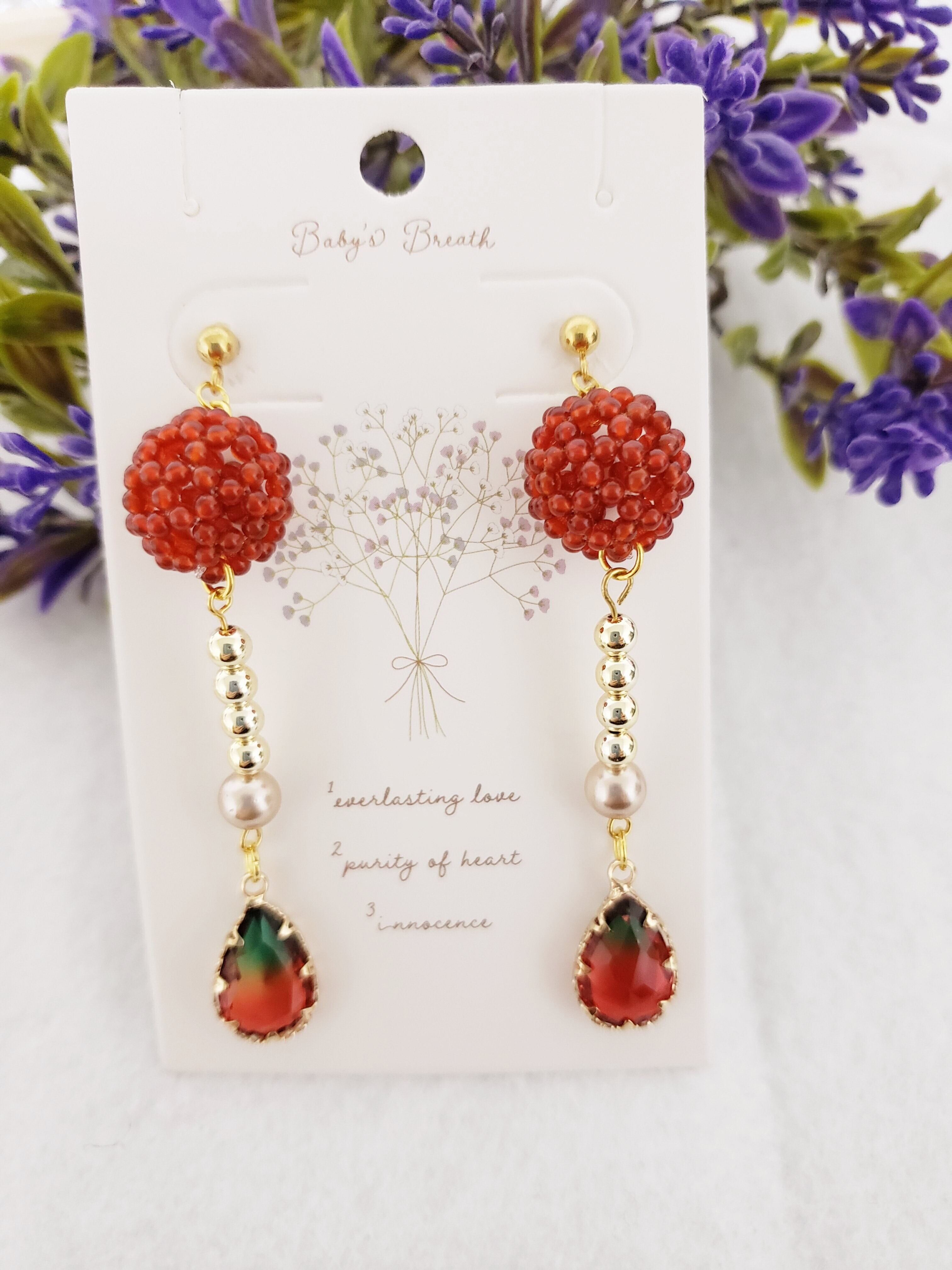 神聖幾何学フラーレン/レッドアゲ-ト2㎜玉 パ-ルビ-ズ&雫チャ-ム付きピアス