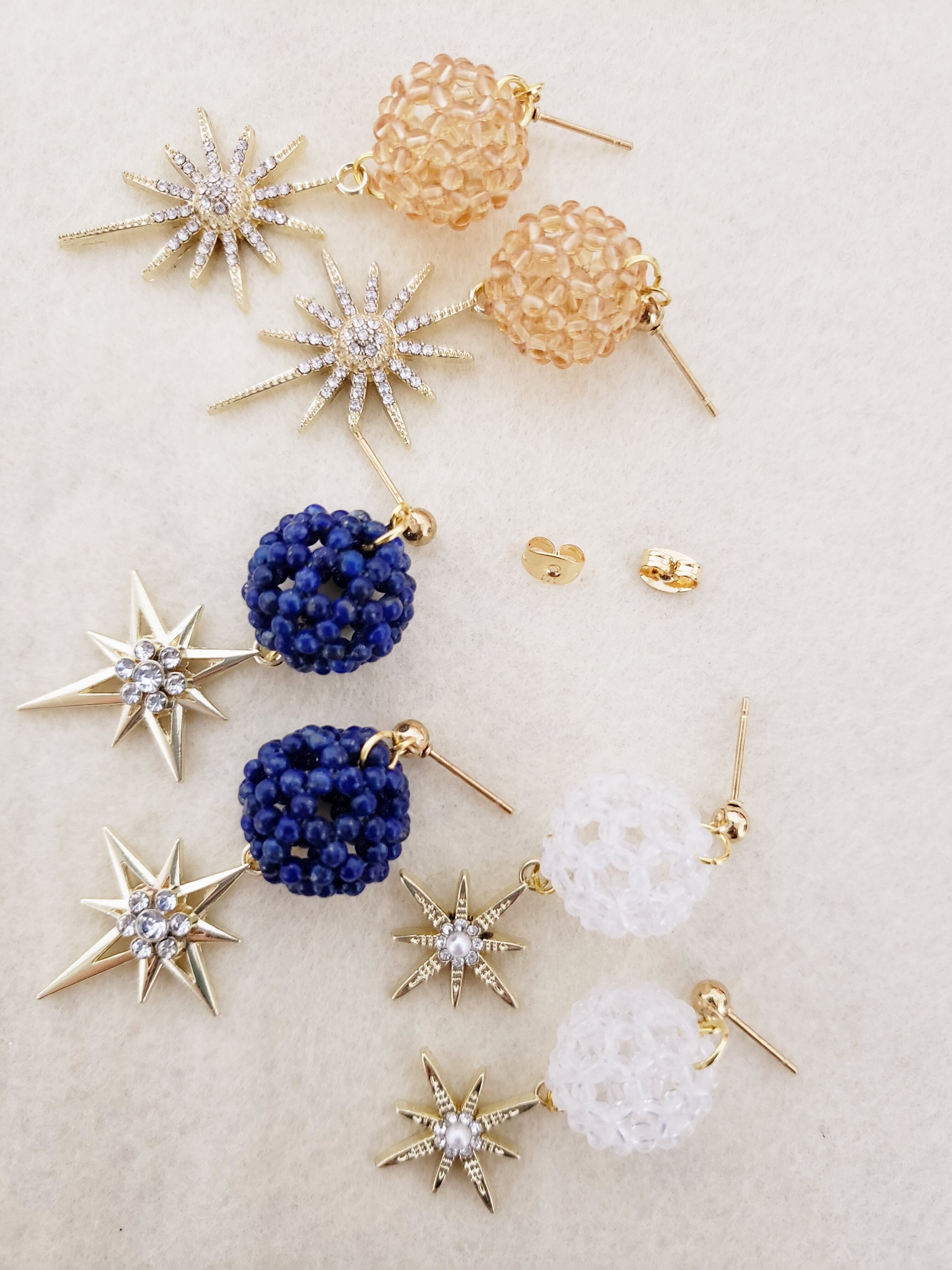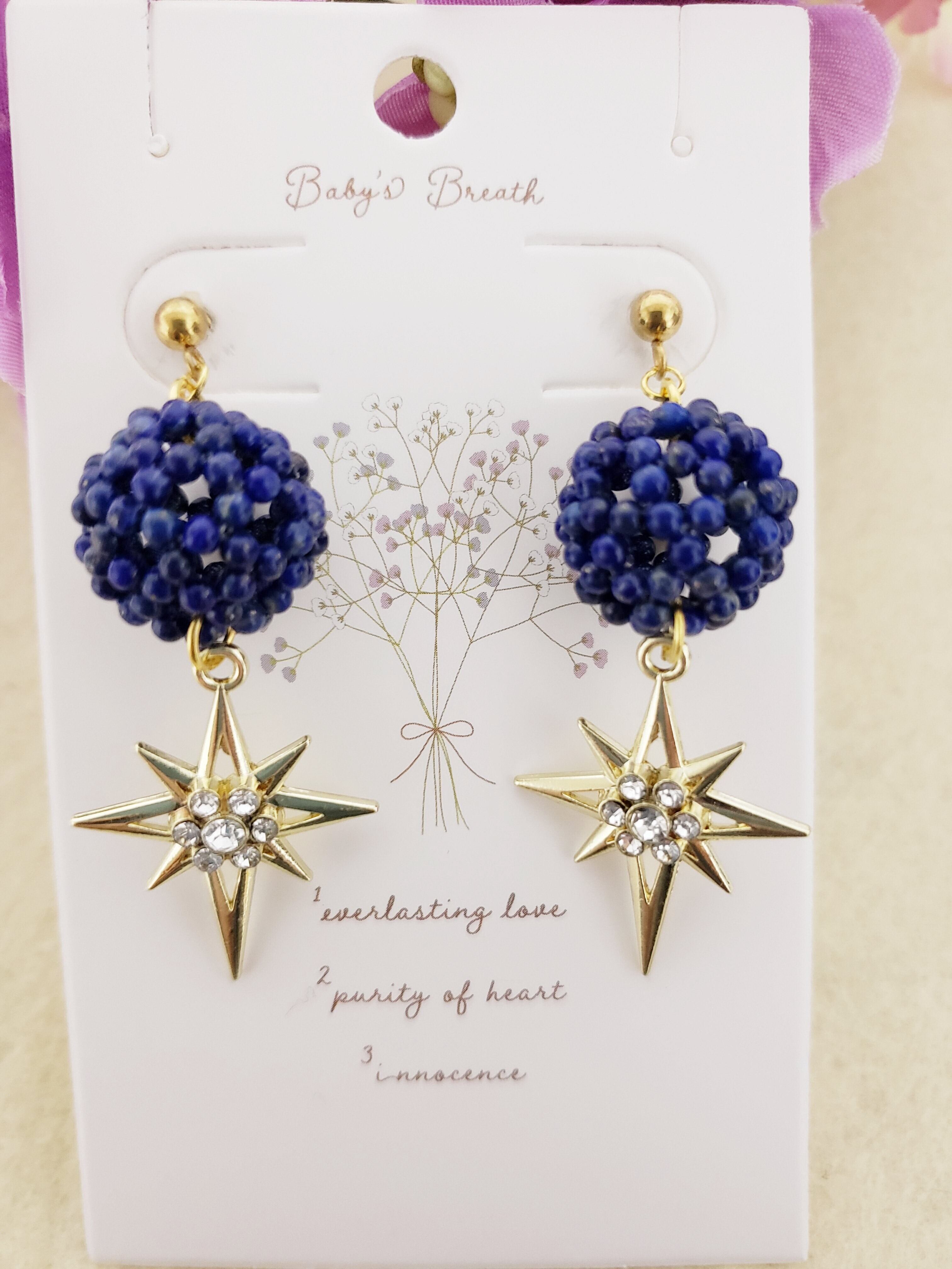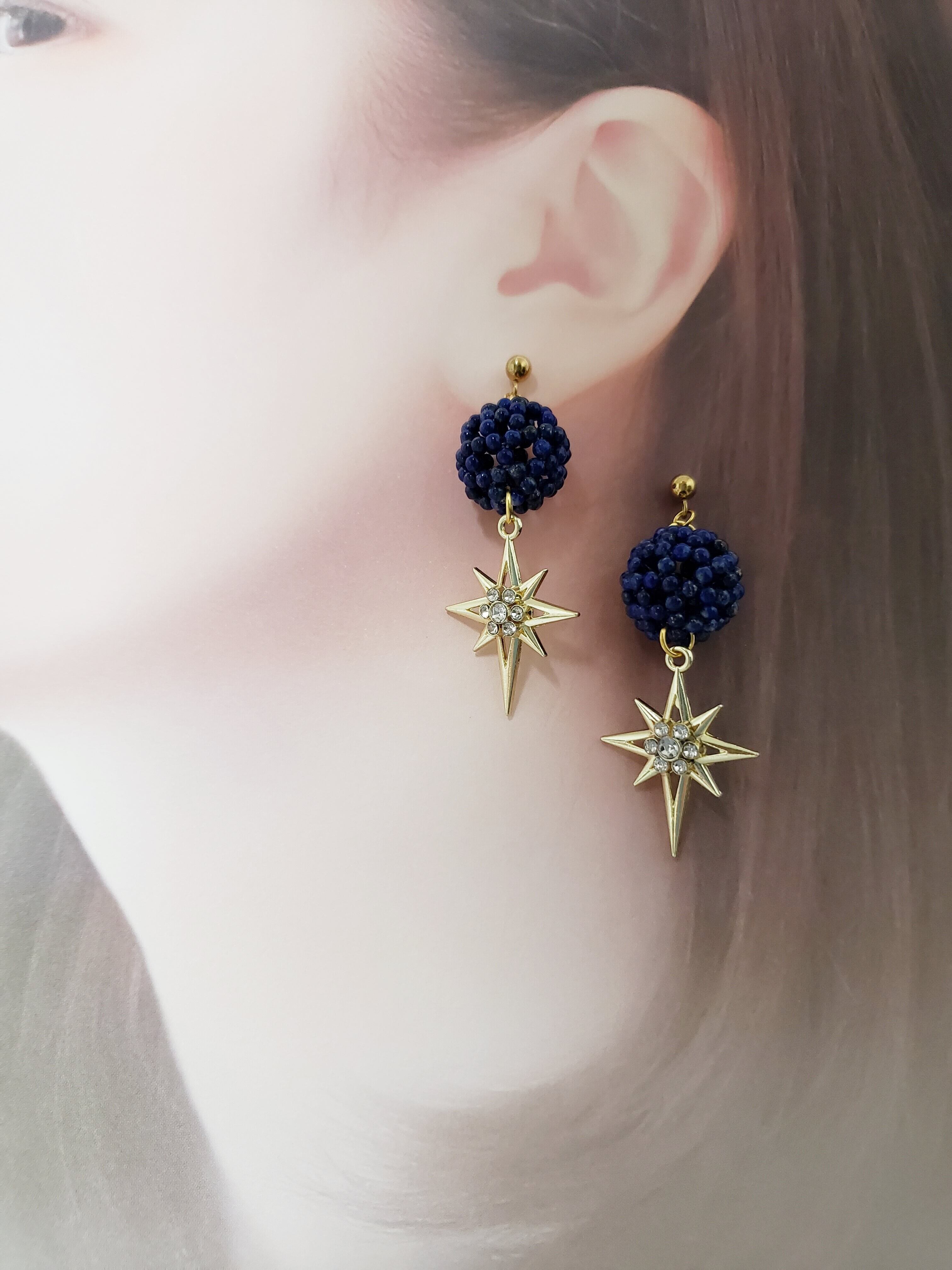 神聖幾何学フラーレン/天然石ラピスラズリ 八芒星(中)チャ-ムピアス