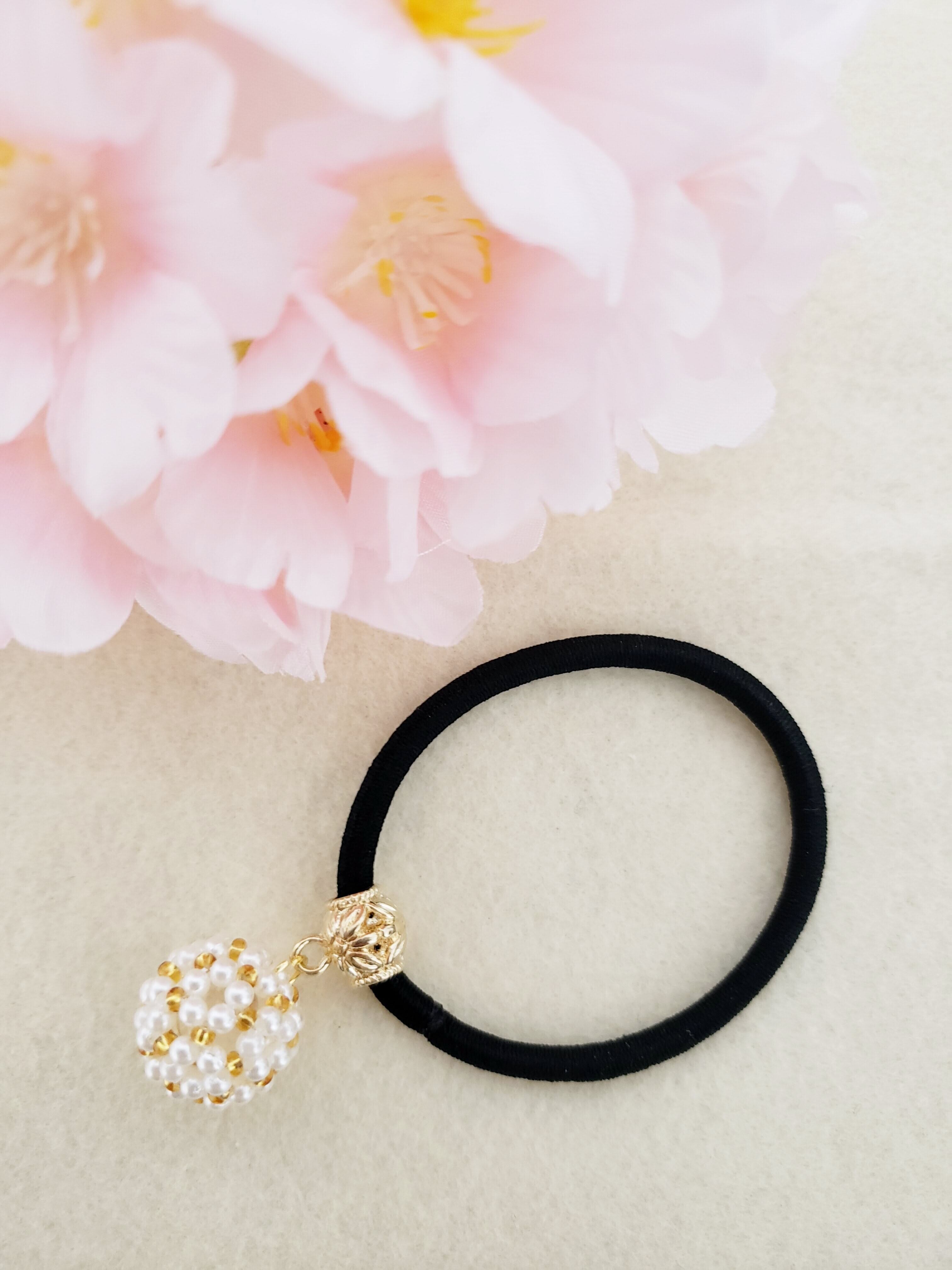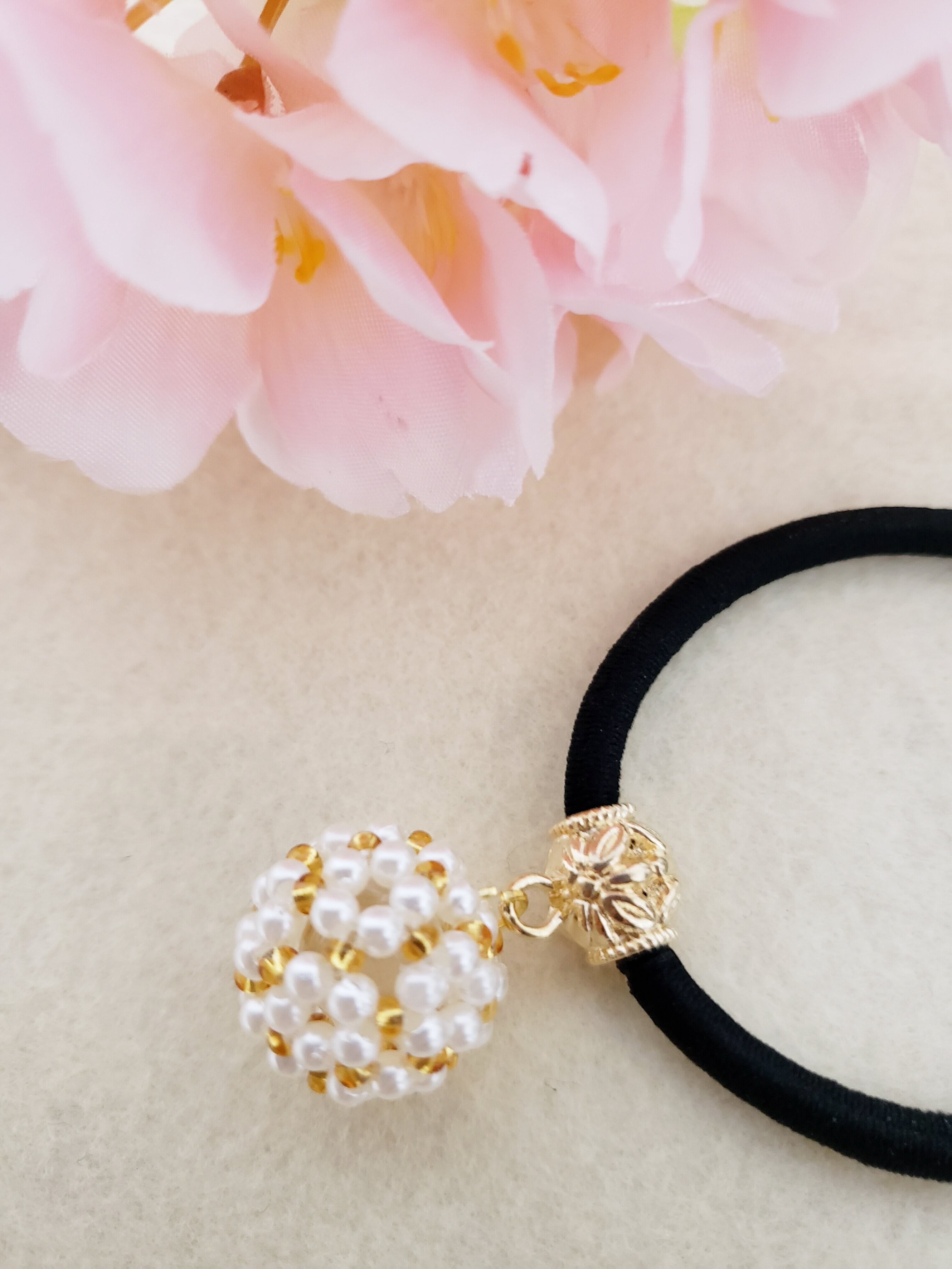 天然石水晶が入ったフラーレン形付きのヘアゴム☆