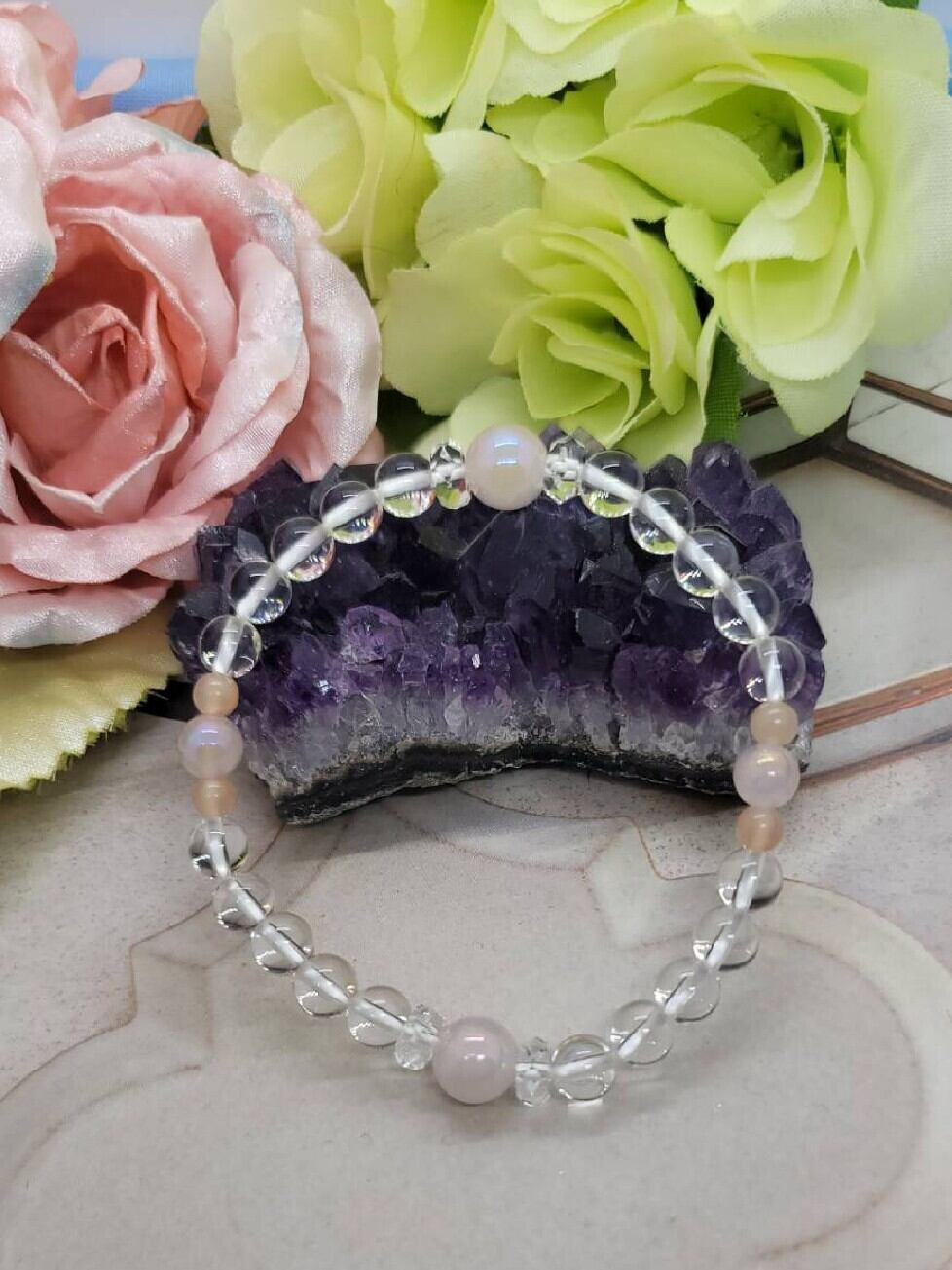 ♡.ローズオーラ&オレンジムーンストーンブレスレット