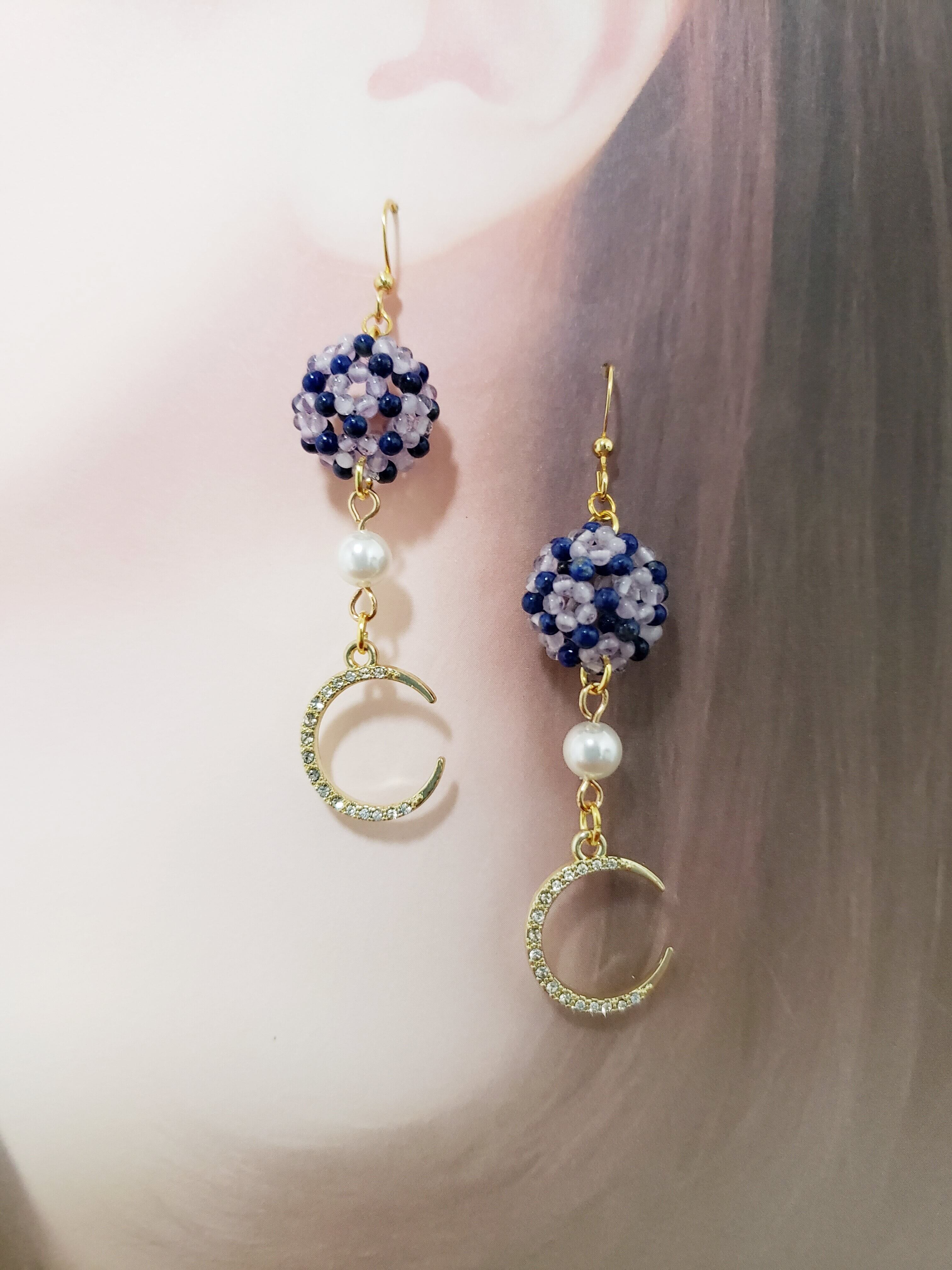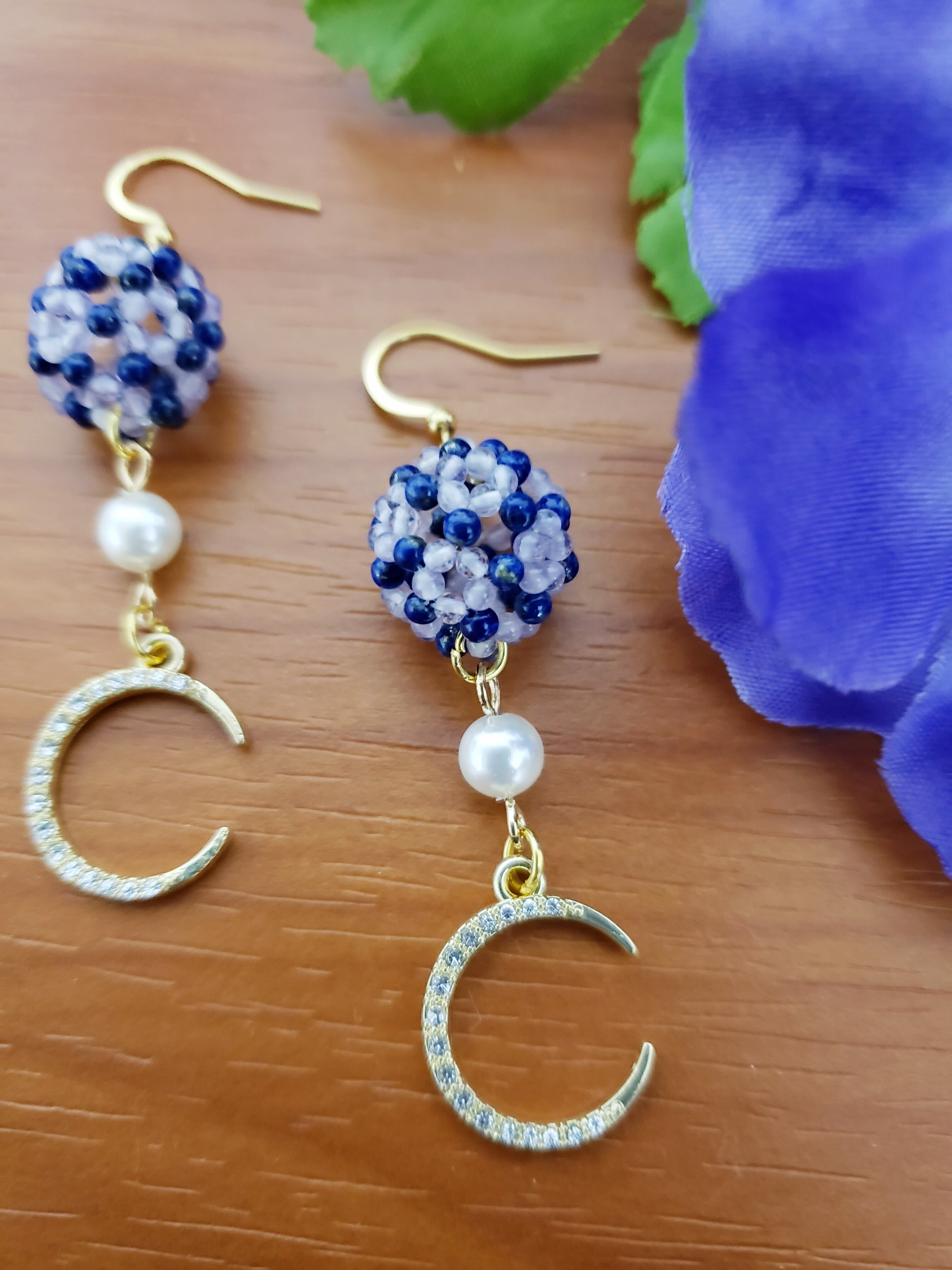 ラピスラズリ&アメジストが織り成す~月ピアス
