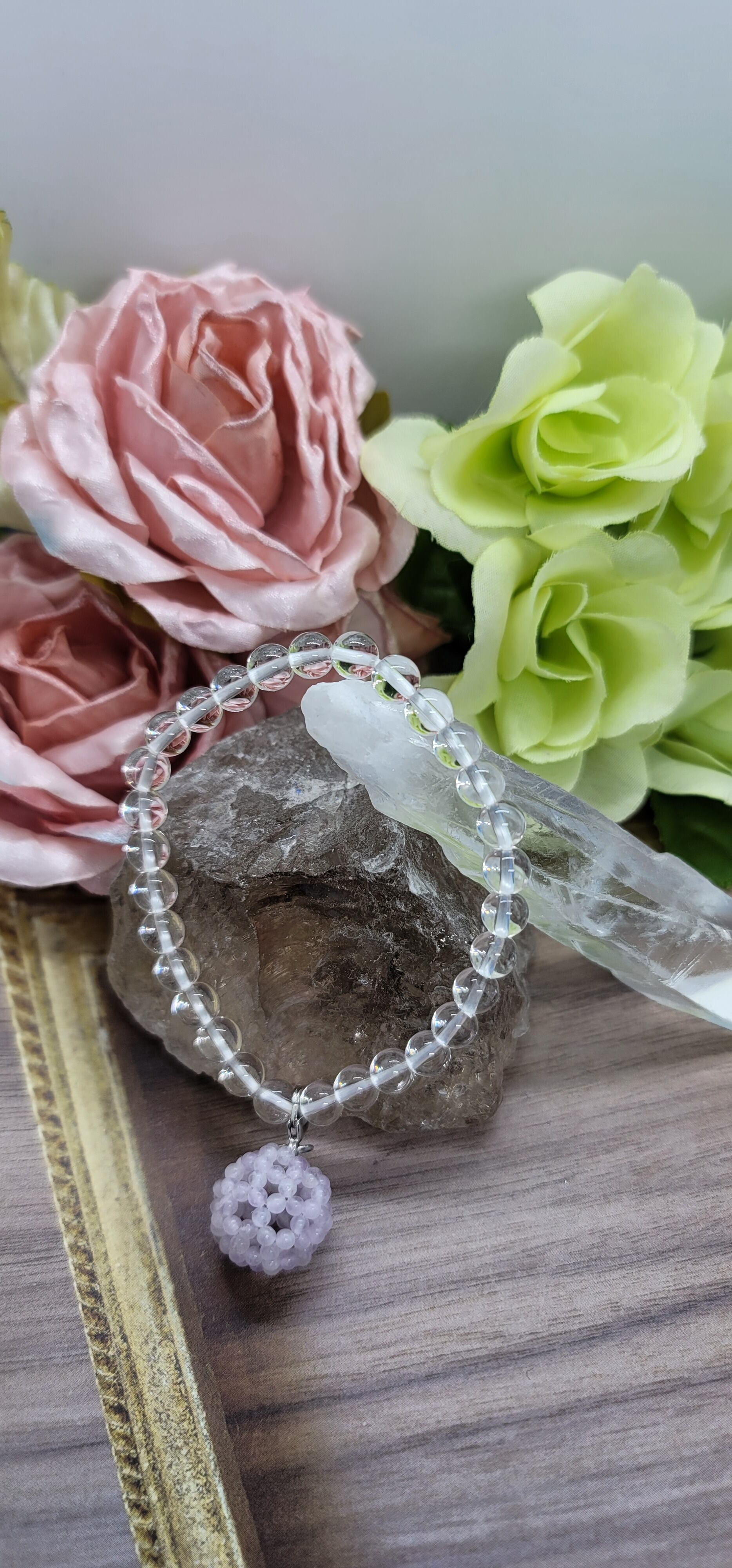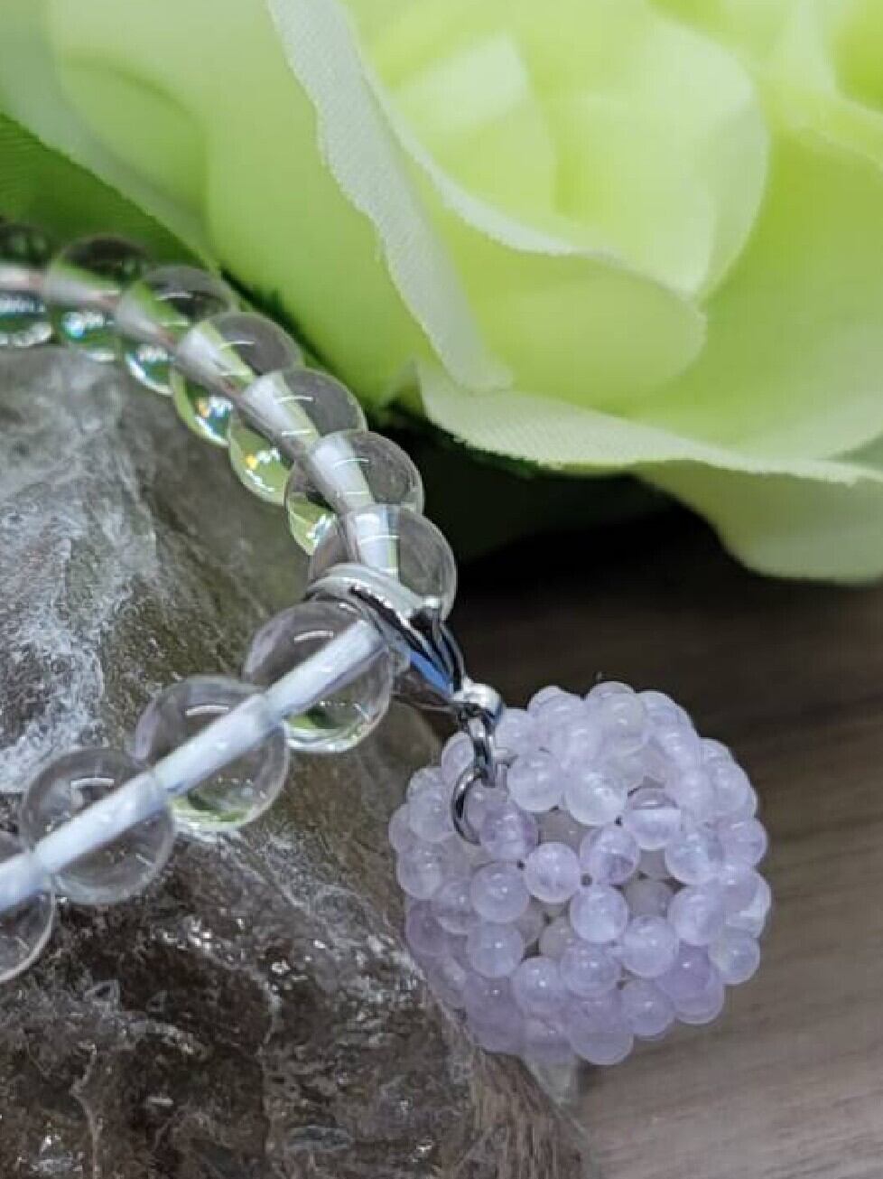 ラベンダーアメジスト/フラーレンチャーム 5A水晶ブレスレット