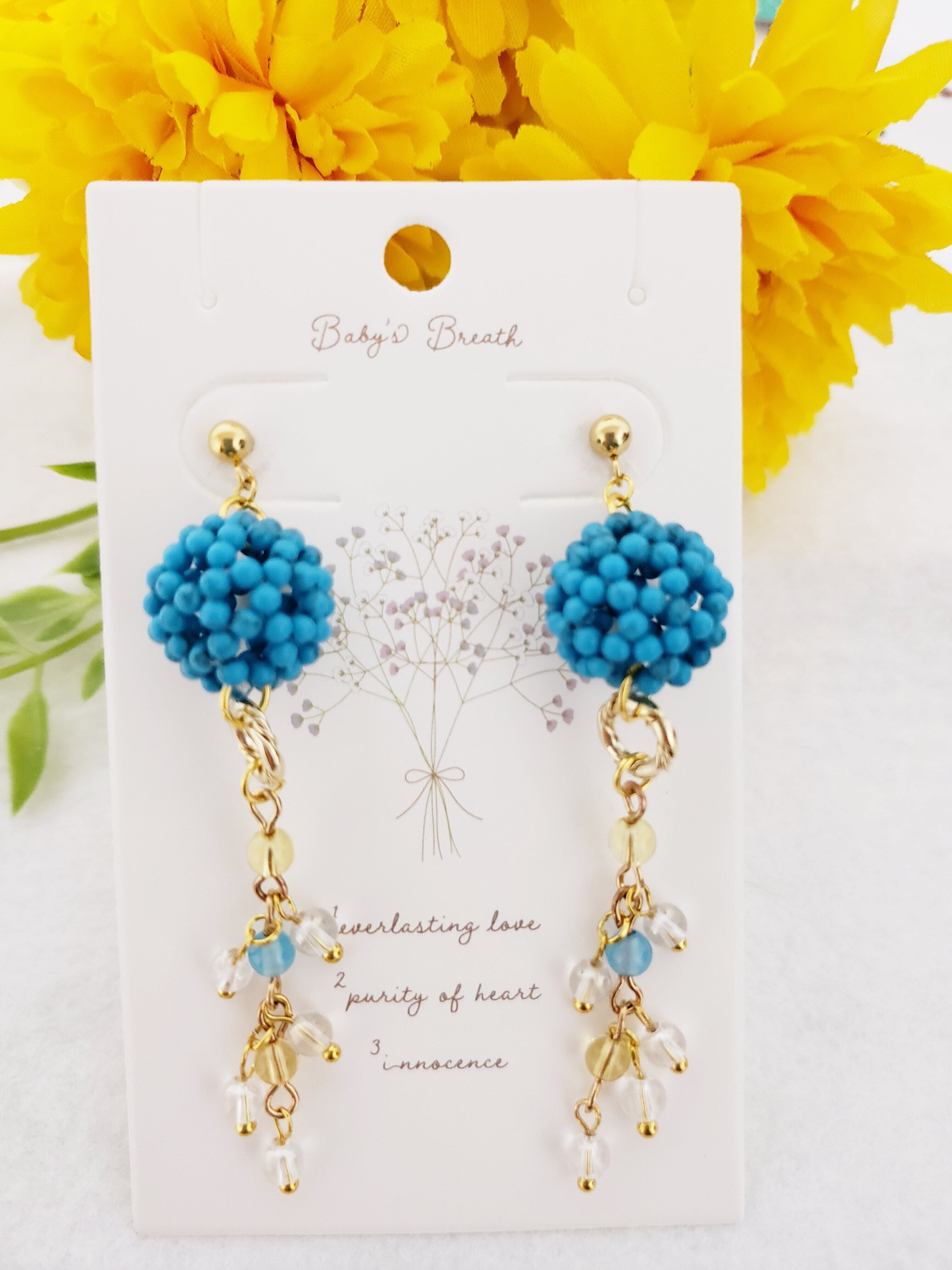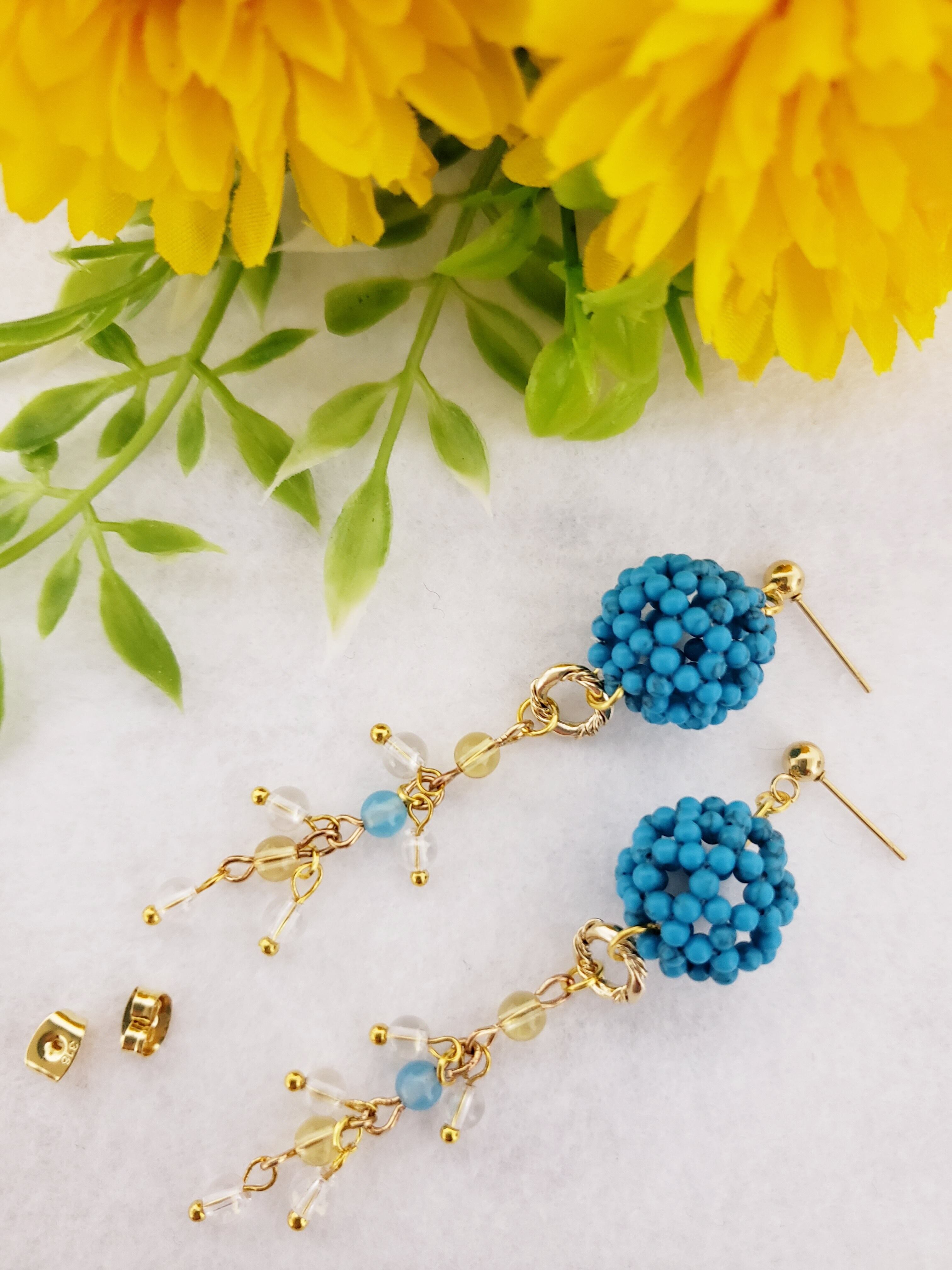 神聖幾何学フラーレン/タ-コイズ シトリン&ブルーアゲ-ト&コスモオ-ラゆらピアス