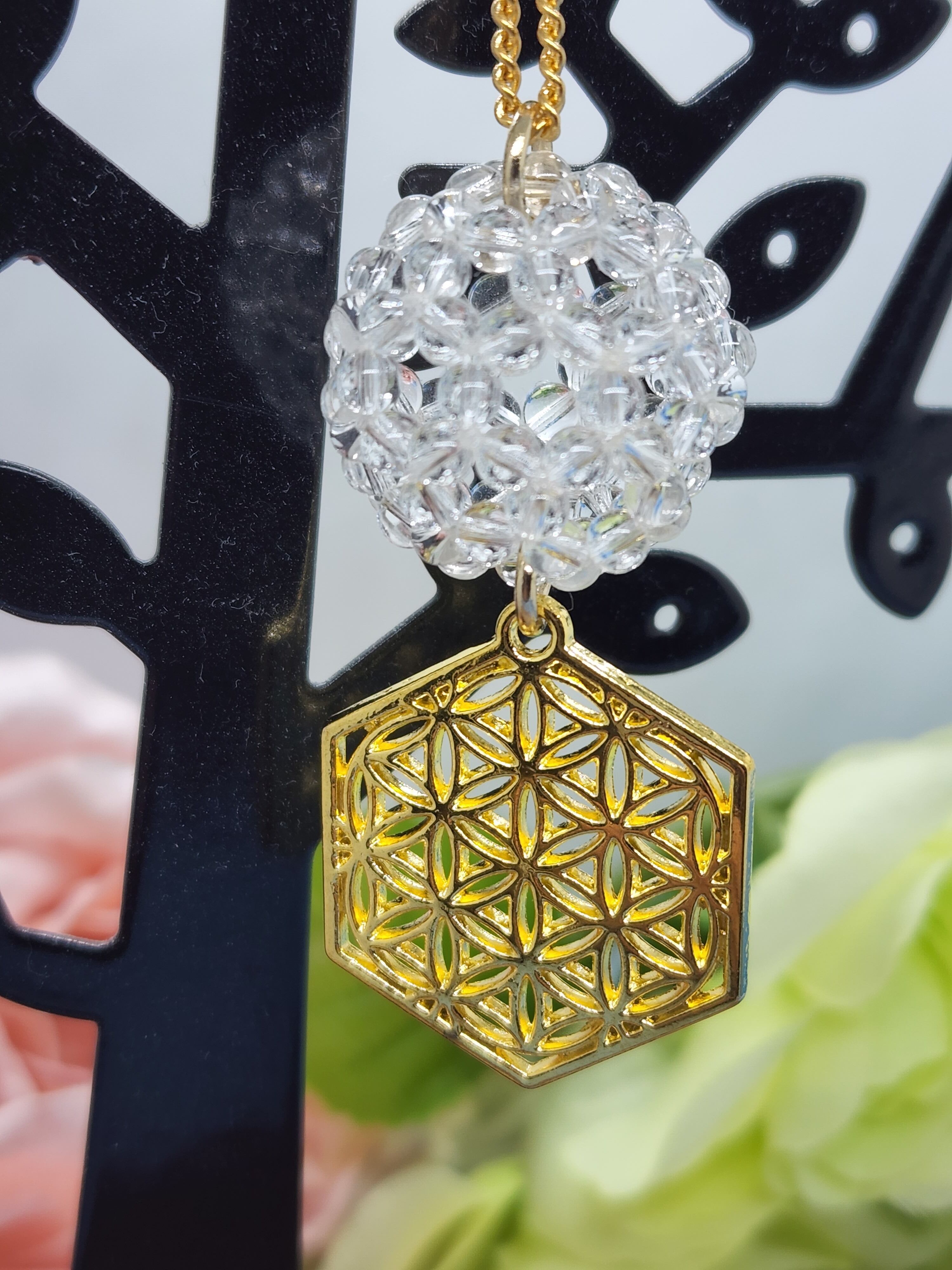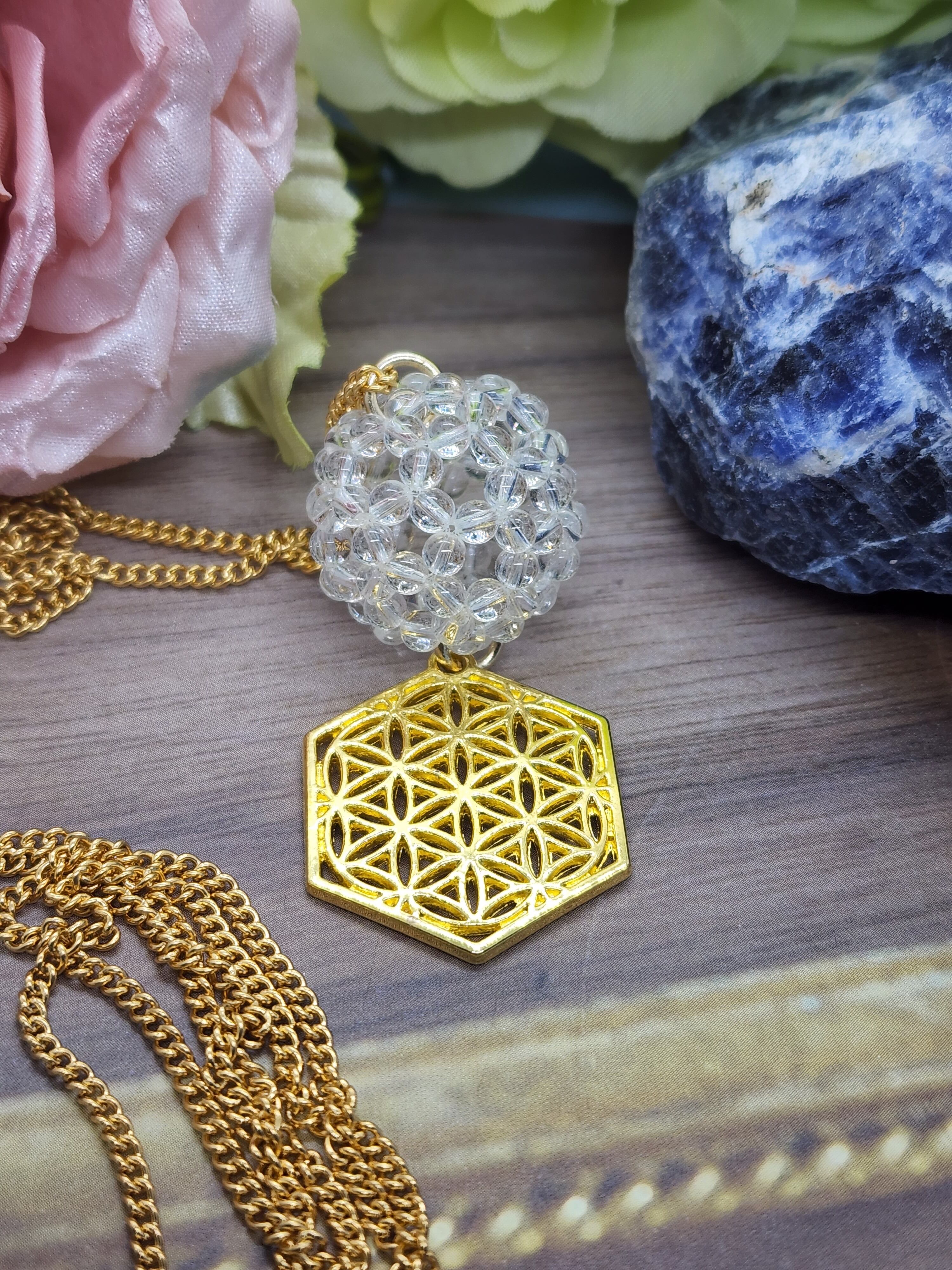 神聖幾何学フラーレン/5A水晶 六角形フラワーオブライフ ネックレス ゴールド