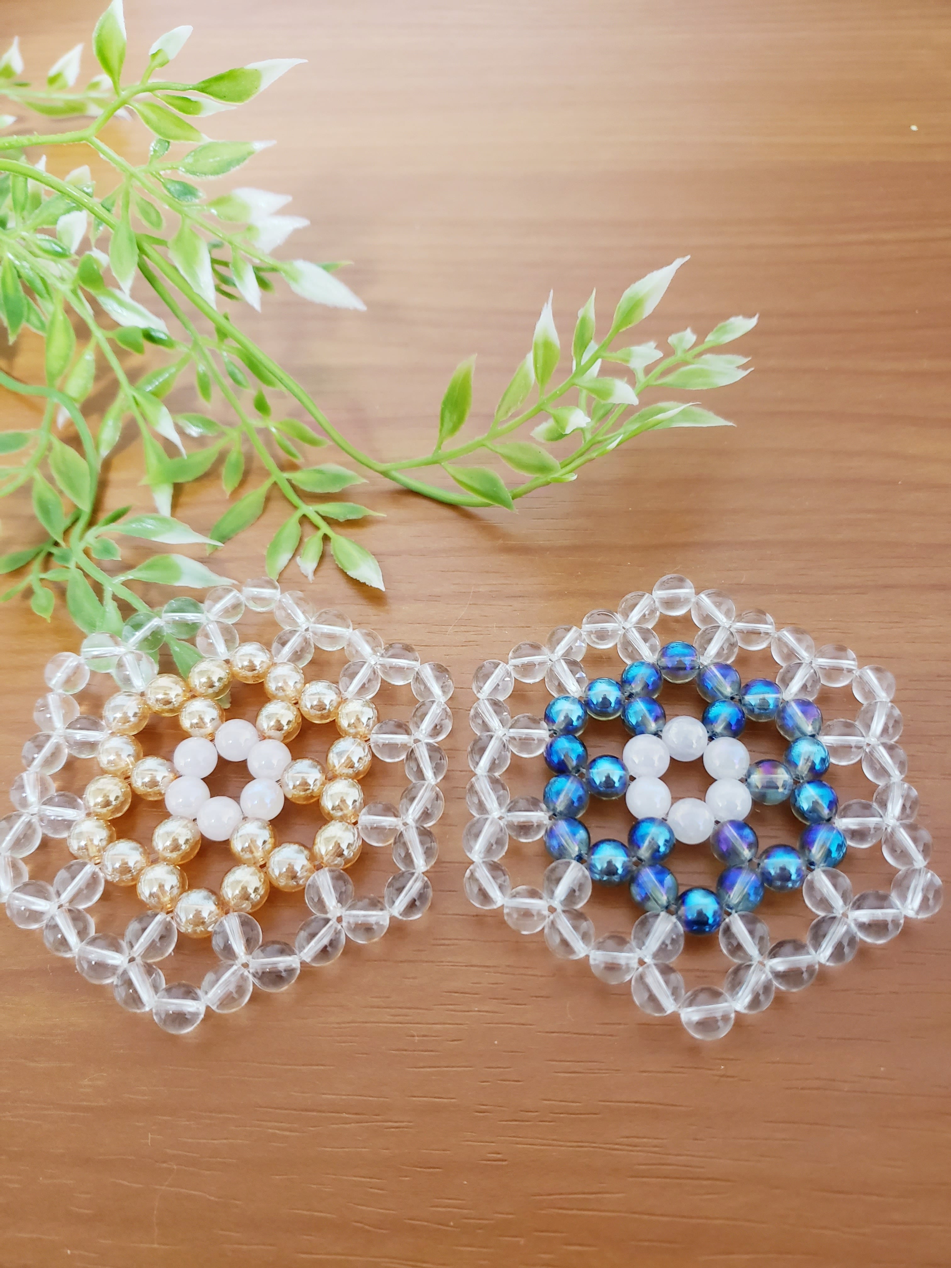 神聖幾何学フラワーオブライフ台座/花~水晶&オ-ラ系 ブルー