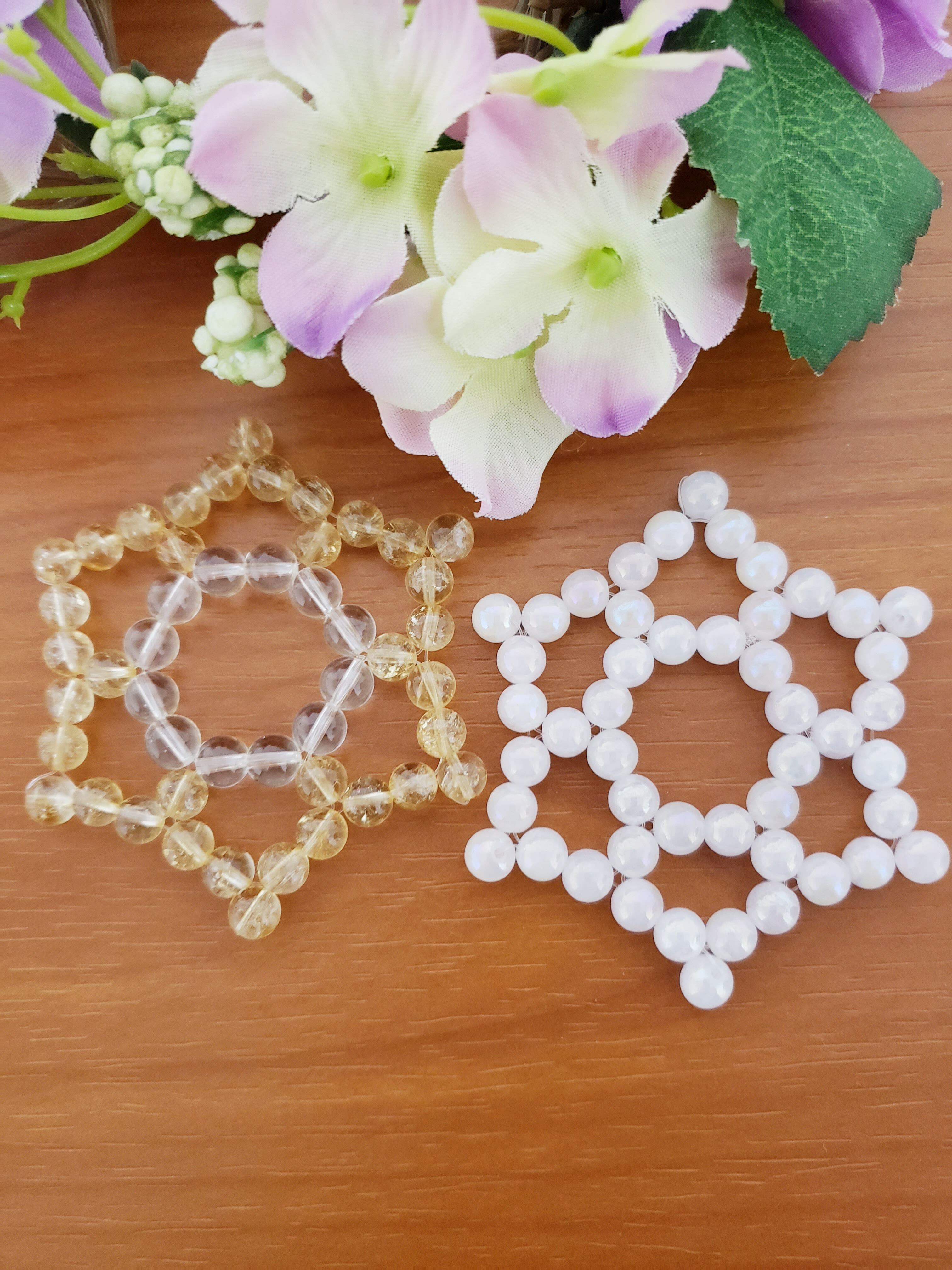 ☆六芒星調☆台座/天然石水晶&レインボーシトリン 6㎜玉