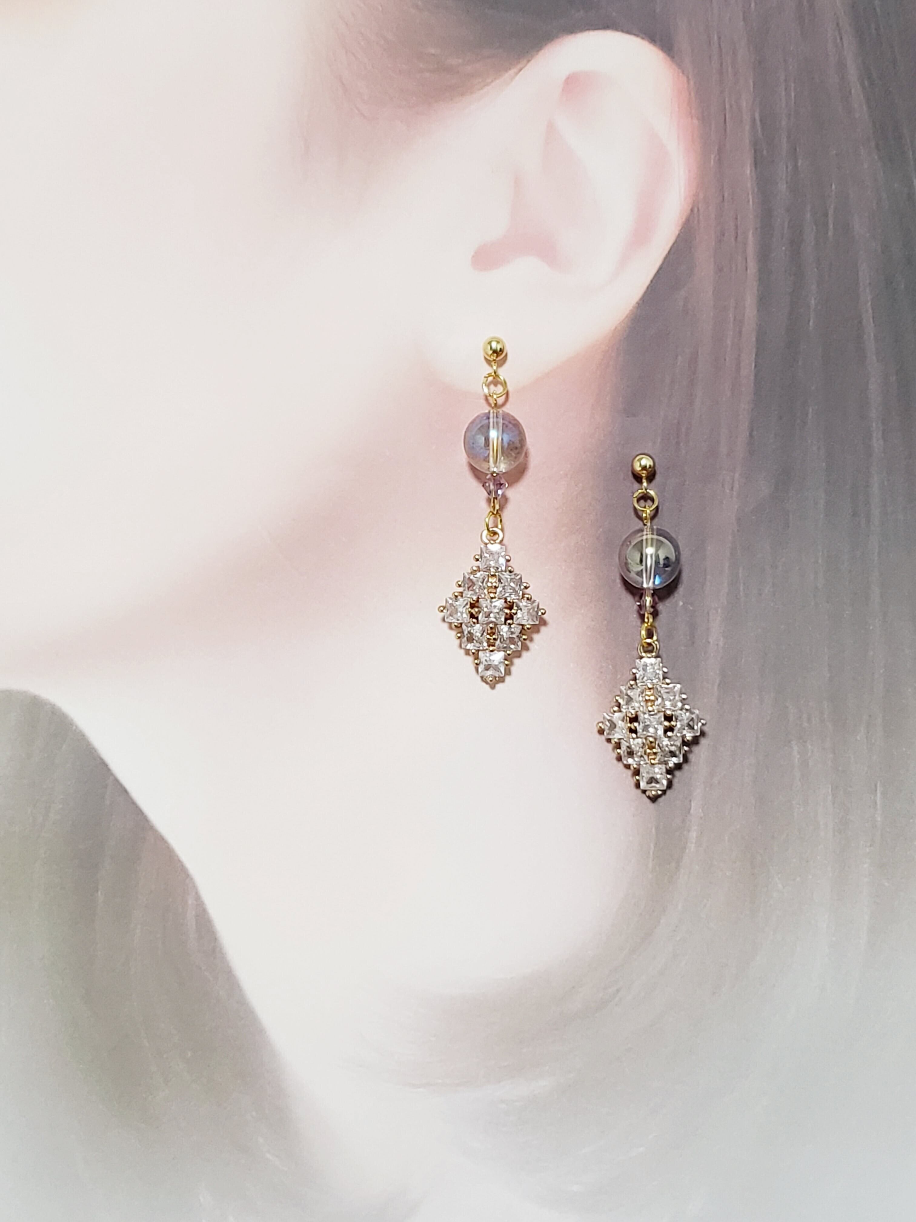 天然石コスモオ-ラ10㎜玉/ジルコニアチャ-ムピアス